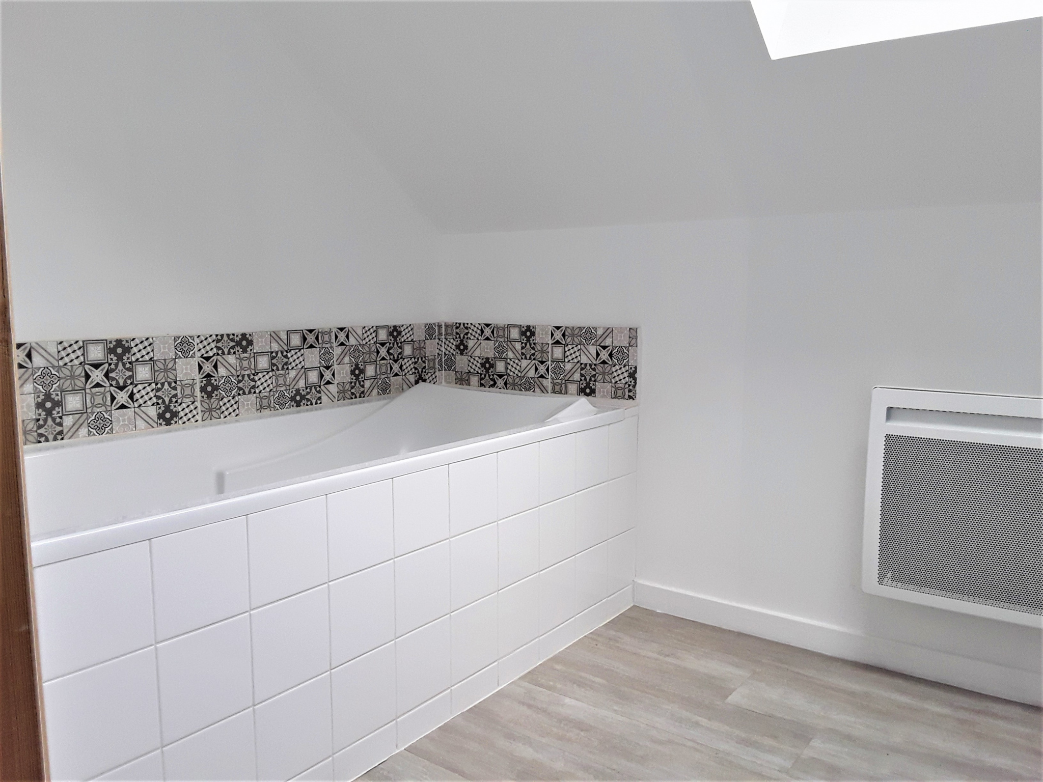 A l’étage, un palier desservant deux chambres spacieuses d’environ 17m2 chacune et une salle de bain.