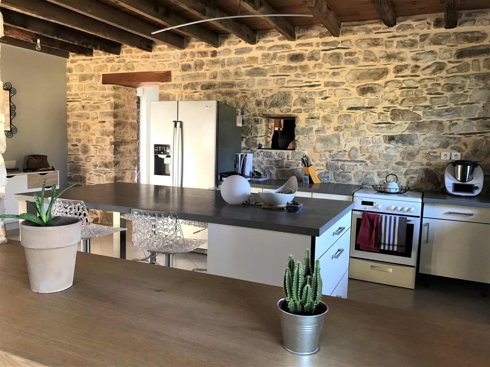 Votre conseiller Noovimo Sylvie PARCOU vous propose de découvrir en exclusivité cette superbe maison en pierre non mitoyenne entièrement rénovée offrant de belles prestations de qualité. Elle vous accueille avec un intérieur soigné et un confort optimal grâce au plancher chauffant par géothermie en rdc, un bel espace de + de 35 m² pour le séjour avec sa cheminée, la cuisine de 20 m² est aménagée, la salle de bains dispose également d'une douche à l'italienne, une buanderie, 2 chambres et 1 bureau/chambre à l'étage. En extérieur, le jardin de 1700 m² propose une grande terrasse, 2 garages, le premier de 30 m² est attenant à la maison, permettant si besoin, la création d'autres espaces, chambres/bureau de plain pied, puis le second indépendant de 70 m² avec porte motorisée est isolé et raccordé à l'eau et à l'électricité avec une pièce aménagée au-dessus.