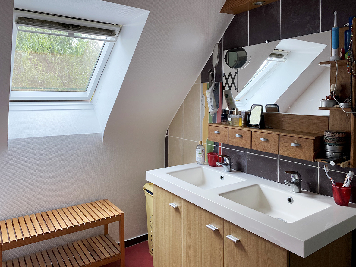Vous disposerez en rez de chaussée, d'un espace de vie comprenant une buanderie d'environ 12m² et d'une grande pièce de 18m², donnant accés au jardin. Possiilité d'une activité professionnelle indépendante.