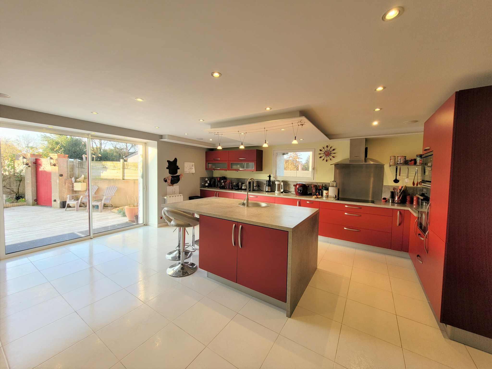Votre conseiller en immobilier Noovimo, Jérémy Lavéant, 06 47 95 06 96, vous propose à 1200m du bourg de Grandchamp des Fontaines, aux portes de Nantes: Cette magnifique longère de 198m² dont un studio ou cabinet attenant avec sa propre entrée + 107 m² de dépendances! 5 chambres (deux au RDC) + un bureau mezzanine de 30m² Une très grande cuisine équipée 32m²! Un magnifique salon avec cheminée et son plafond cathédrale. Une salle de bain, 3 WC. Une buanderie chauffée et isolée. Une grande arrière cuisine. Sur une très belle parcelle arborée, entièrement cloturée (murs), de près 1100m². Sans vis à vis, au calme. Les plus; un très grand double carport + 60m² de dépendances. Portail et portillon éléctriques, visio + video surveillance, toutes les menuiseries de la maison sont récentes (+ volets éléctriques). Tout à l'égout, chaudière à condensation + chauffage au sol. Prévoir un rafraichissement de la partie étage pour y exprimer votre personnalité. Proche de la ligne ALEOP 300 et scolaire, AU CALME. Pour plus de renseignements contactez moi, je vous la ferais visiter avec plaisir! N'hésitez pas à consulter mes autres biens sur mon site jlaveant.noovimo.fr Honoraires : 3,44 % TTC de 480000 € ( prix de vente honoraires exclus). Soit 496500 € honoraires inclus. Honoraires à la charge de l'acquéreur. Nos honoraires sont consultables sur : www.noovimo.fr. Ref : JLV-0011423 .Votre agent commercial Noovimo inscrit au RSAC de Nantes sous le N° 2020AC00213