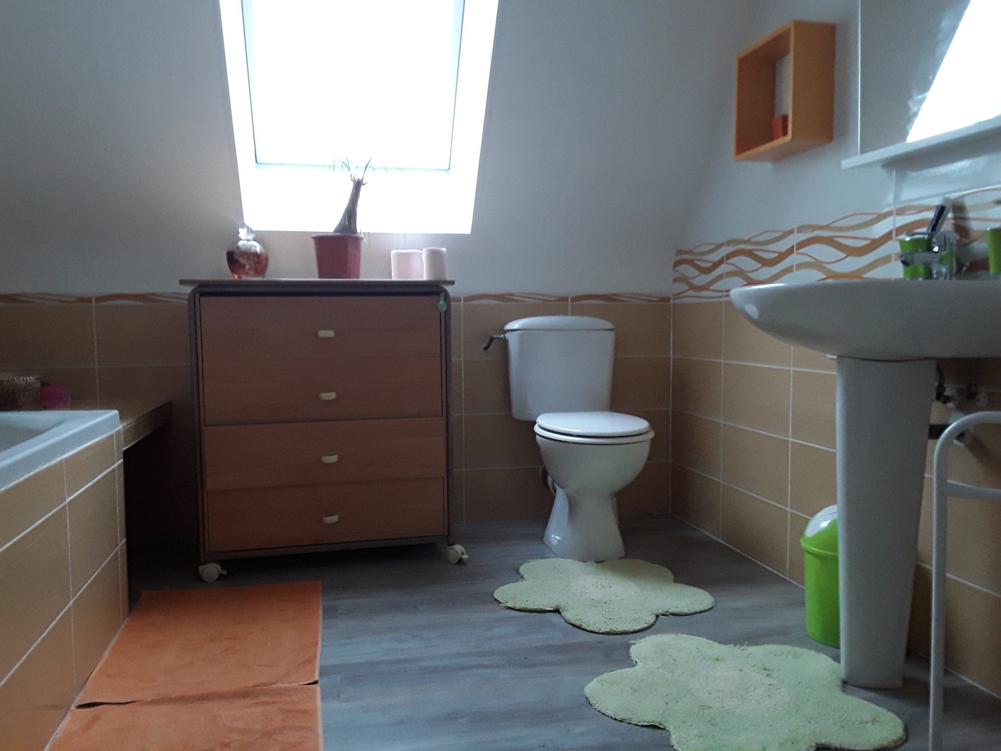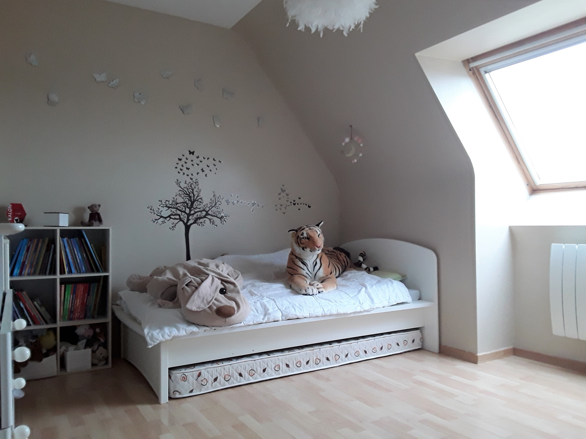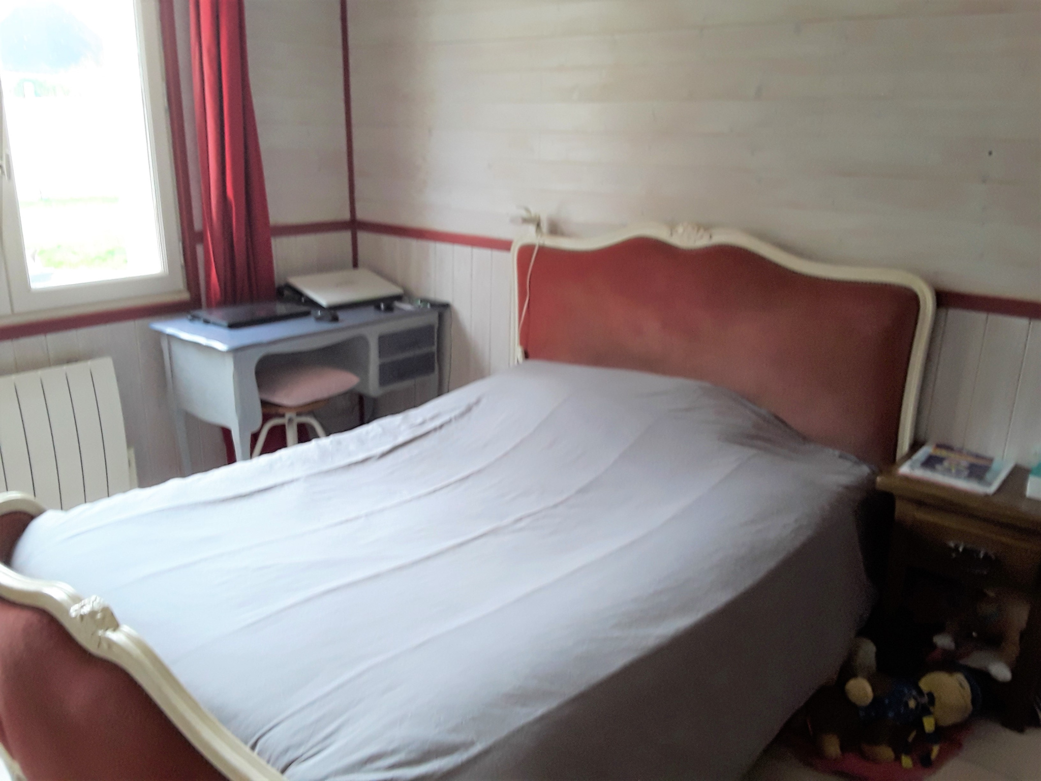 Sur le même niveau, vous trouverez une chambre, une salle d’eau, un wc et une deuxième petite chambre.