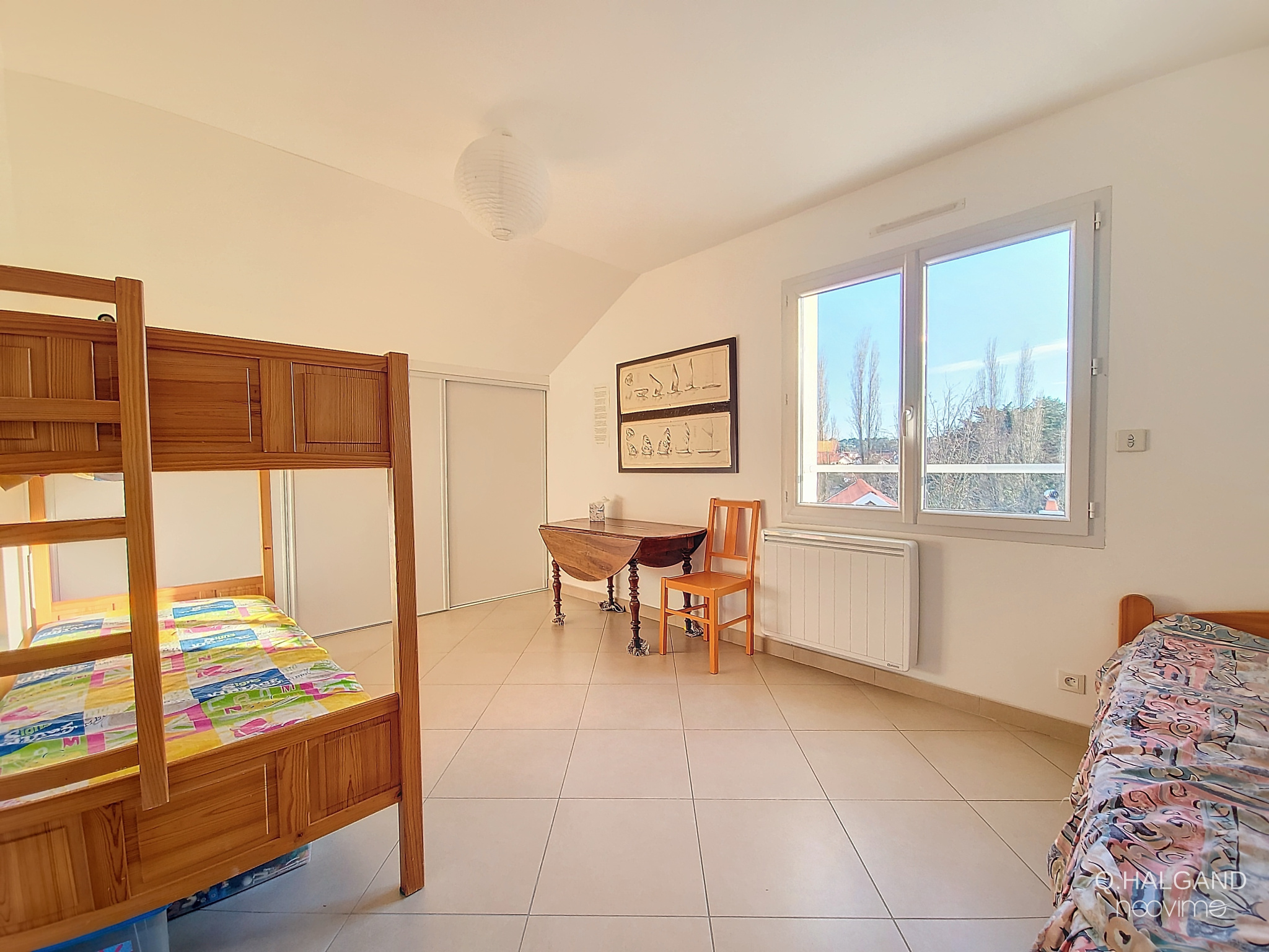 La maison est idéalement conçue pour la vie familiale, avec cinq chambres dont trois situées au rez-de-chaussée, facilitant ainsi un mode de vie de plain pied. Ces espaces sont complétés par une salle d'eau, un WC, et une buanderie au même niveau. À l'étage, vous trouverez deux chambres supplémentaires dotées de placards pour le rangement, un WC, et une autre salle d'eau, assurant ainsi confort et fonctionnalité à chaque étage.