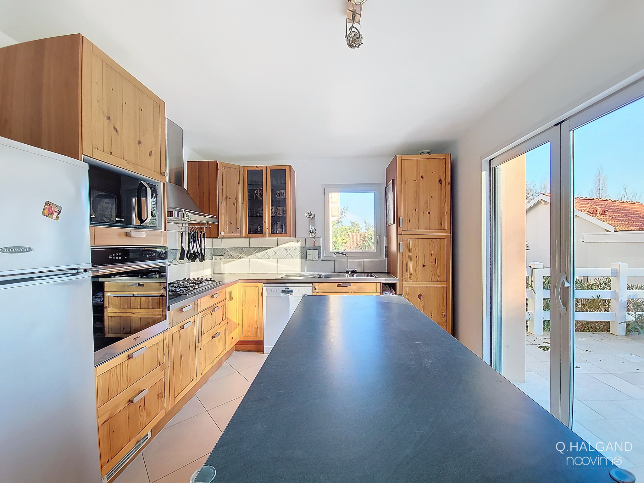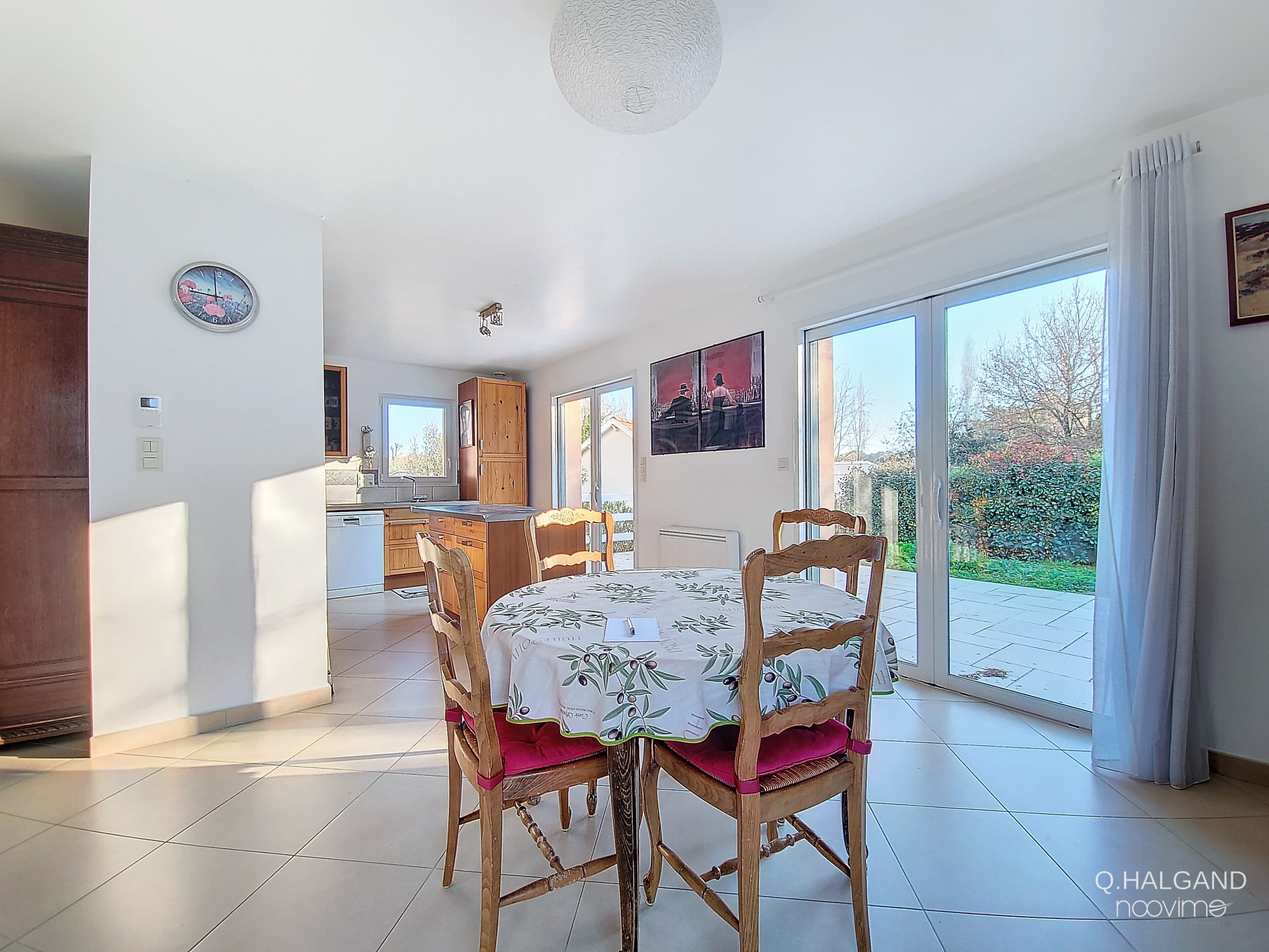 La pièce de vie, lumineuse, spacieuse et orientée sud-ouest, constitue le cœur de la maison. Elle offre une cuisine aménagée et équipée avec un îlot central, créant un espace idéal pour les moments de convivialité. Cette pièce s'étend vers l'extérieur sur une vaste terrasse de 40 m², invitant à des repas en famille ou des moments de détente au soleil.