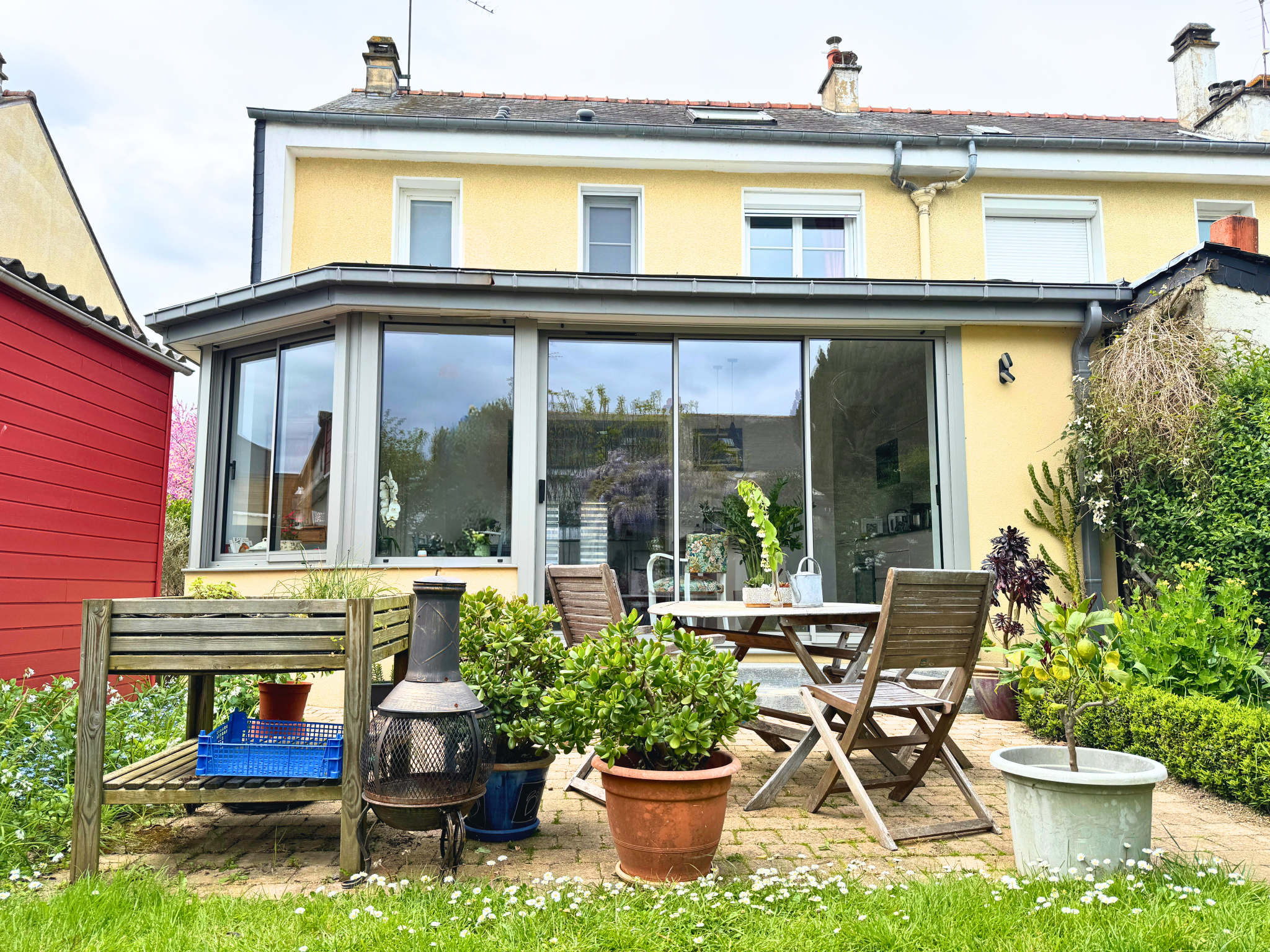Arnold DENES, votre conseiller immobilier Noovimo à Rennes, présente en exclusivité cette agréable et spacieuse maison de ville avec jardin au sud de Rennes offre un cadre de vie paisible à 10 minutes du centre-ville et de la gare, dans un quartier pavillonnaire calme et arboré. On y trouve tout ce qu'il faut pour le quotidien: boulangerie, boucherie, caviste, pharmacie, coiffeur, écoles, parc à jeux, ainsi que des centres commerciaux. Le quartier est très calme car situé entre les avenues dont on entend à peine la circulation et la rue n'est pas passante.