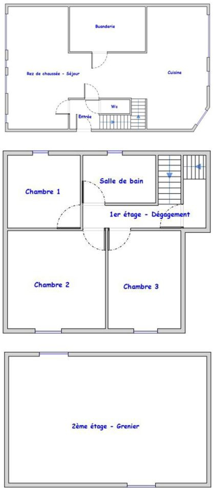 - quatre chambres, dont une de 50 m2 au sol dans les combles aménagés sur dalle béton