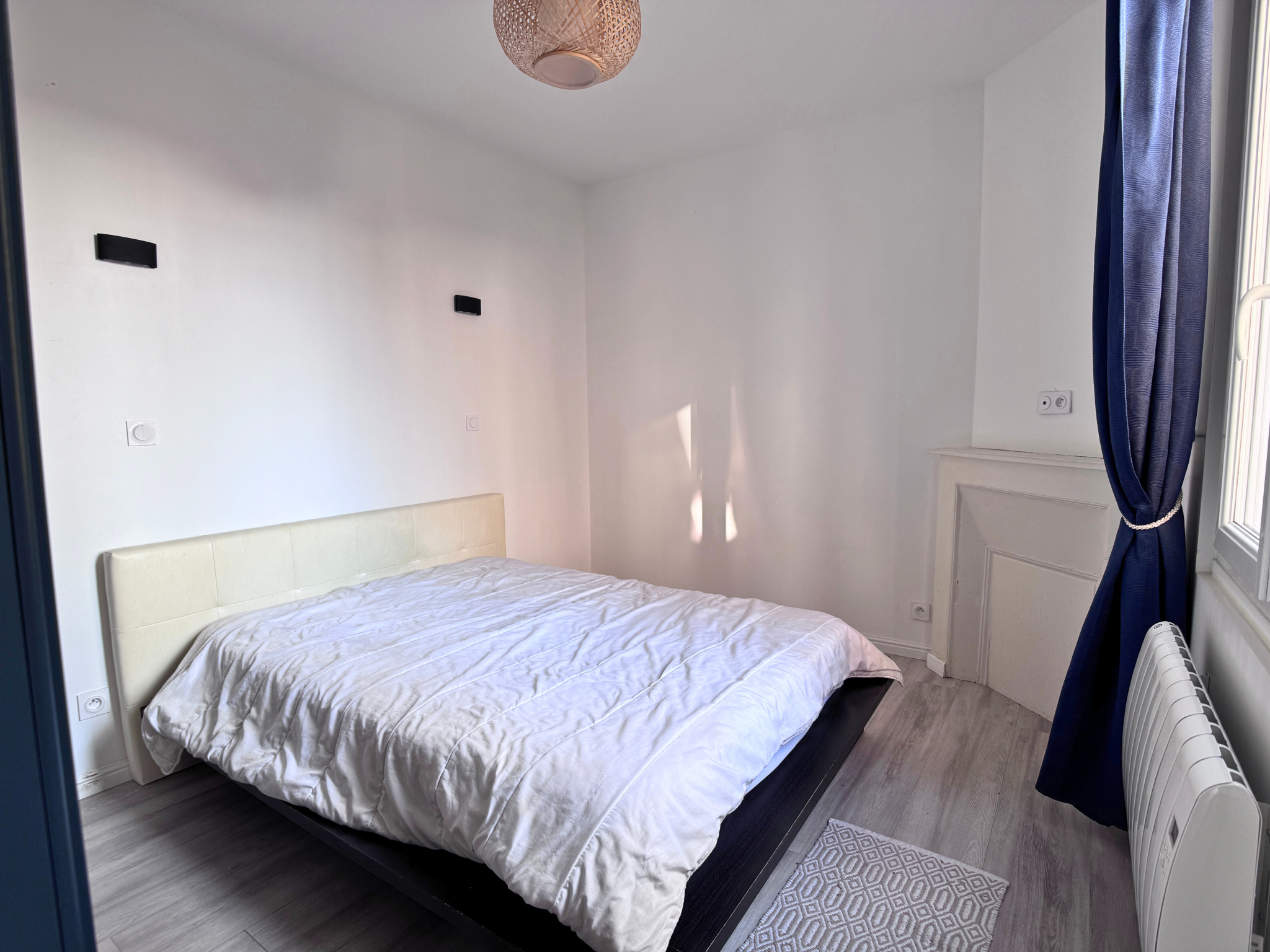 Ce bien est composé d'une pièce de vie spacieuse avec kitchenette moderne aménagée et équipée, d'une chambre avec cheminée (condamnée) qui apporte du cachet, d'une salle d'eau et de WC séparés.