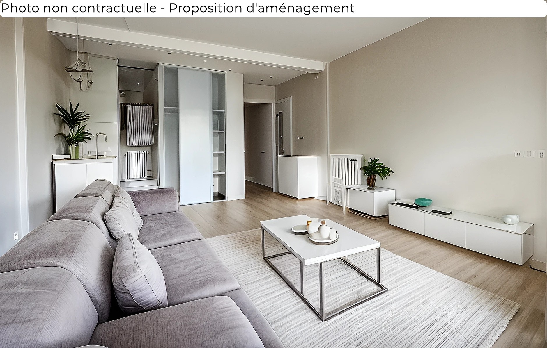 L'appartement se compose d'une entrée avec rangement, d'une belle pièce de vie donnant sur un grand balcon, ainsi que d'une vaste salle d'eau avec WC avec la place suffisante pour un lave-linge et un sèche-linge. Les portes-fenêtres vitrées sont à isolation thermique et phonique, garantie d'un grand confort de vie.
