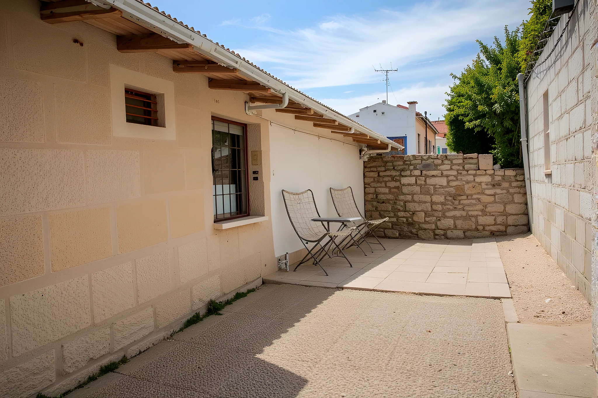 Ce logement offre un séjour lumineux, une cuisine séparée avec cellier, deux chambres, une salle de bain et un WC indépendant. À l’extérieur, une cour permet le stationnement d’un véhicule et l’aménagement d’un espace terrasse, parfait pour profiter des beaux jours.