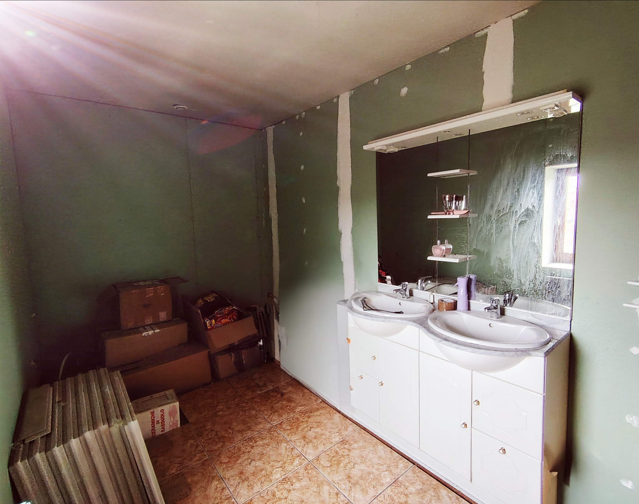 À l’étage : deux chambres (11 et 14 m²) ainsi qu’une grande salle d’eau de 9 m² à finaliser selon vos envies.