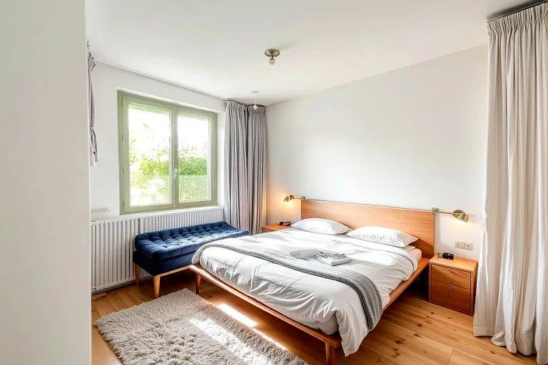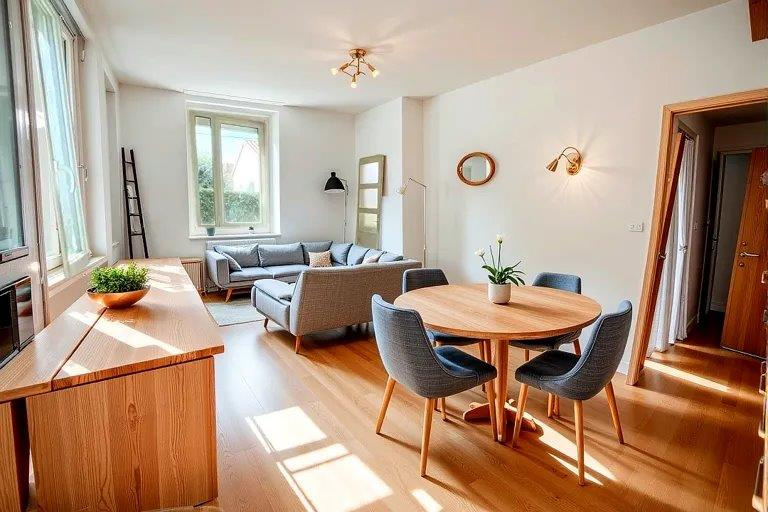 Elle se compose d’un séjour lumineux, d’une cuisine équipée, de deux chambres avec parquet (dont une avec placard intégré), d’une salle de bain et de WC séparés. Confort assuré : chauffage central, double vitrage, volets électriques.