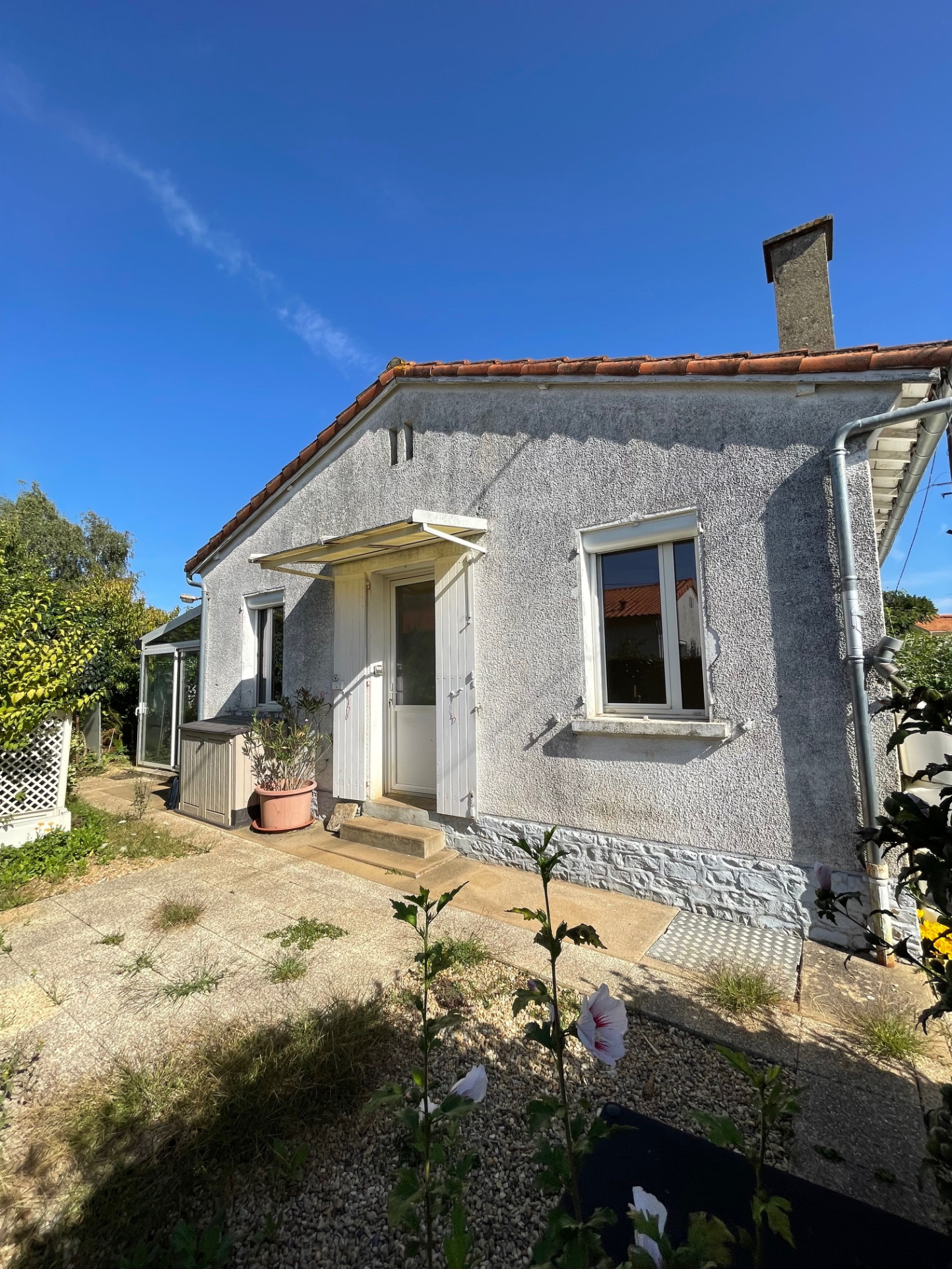 Un garage attenant vous offre un espace de stationnement pratique ou de rangement supplémentaire. La maison dispose également d’une petite véranda sur le côté, parfaite pour profiter des beaux jours.