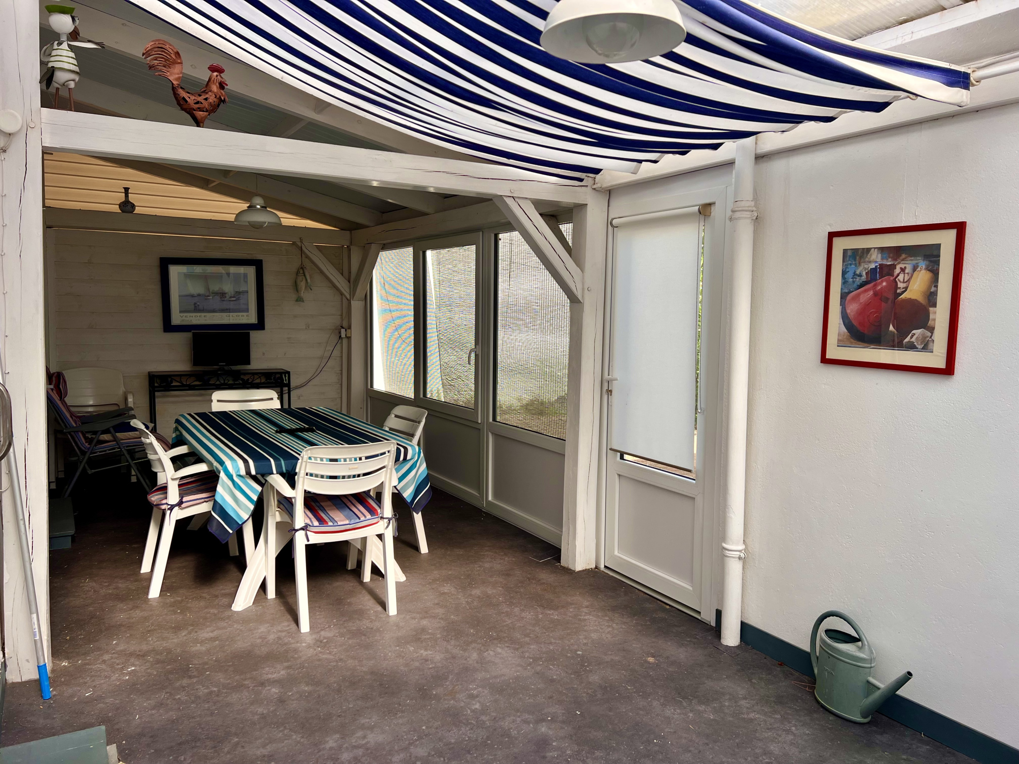 Cette maison se compose : d’un salon lumineux ouvert sur cuisine, d’une véranda non chauffée faisant actuellement office de salle à manger, de 2 chambres avec placards, d’une autre pièce indépendante connectée à la véranda pouvant faire office de 3ème chambre, d’une salle d’eau et d'un WC.