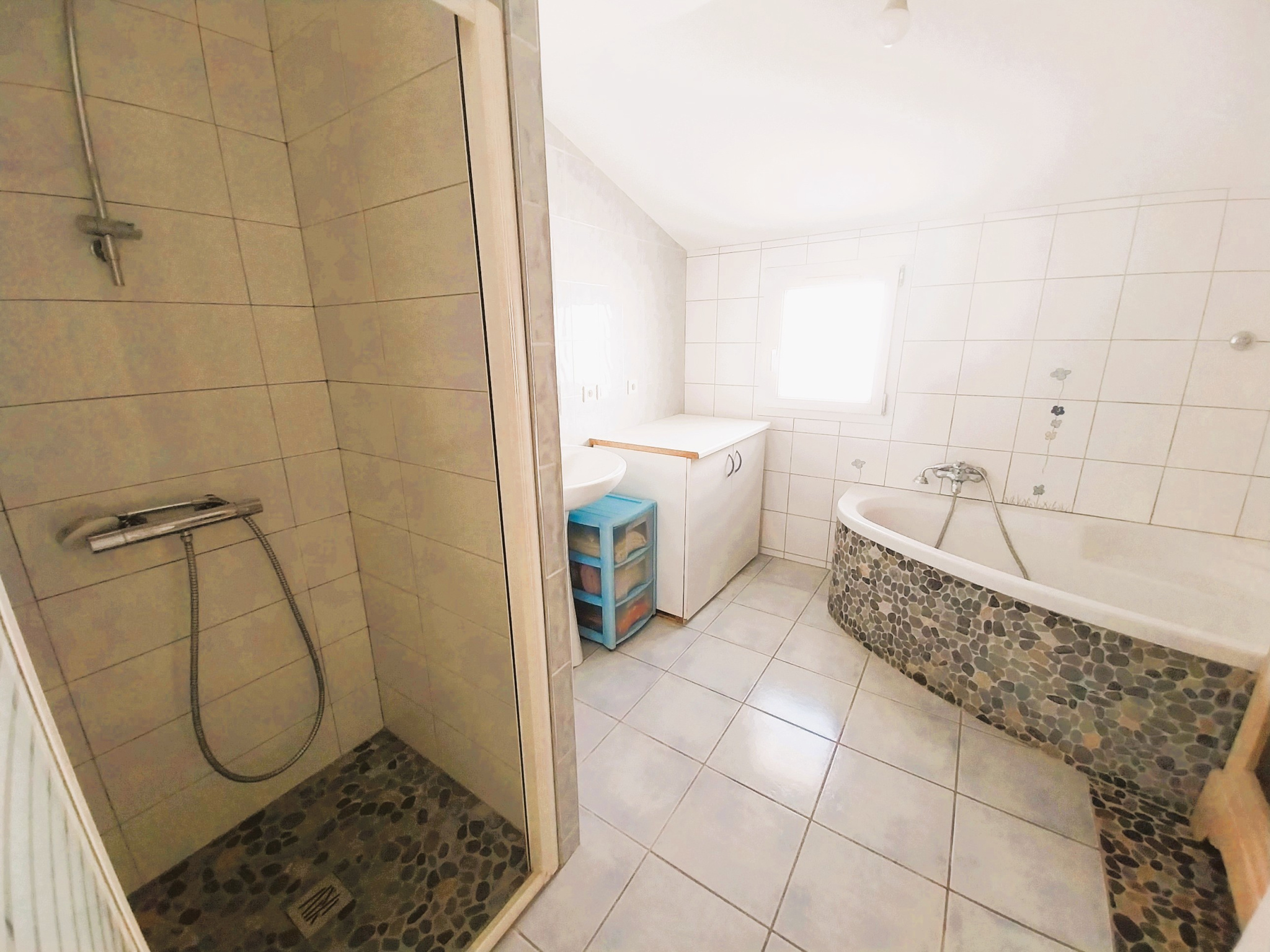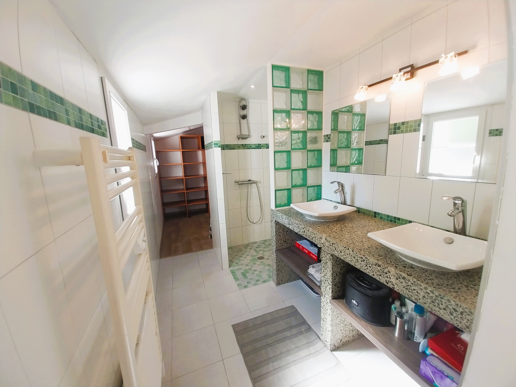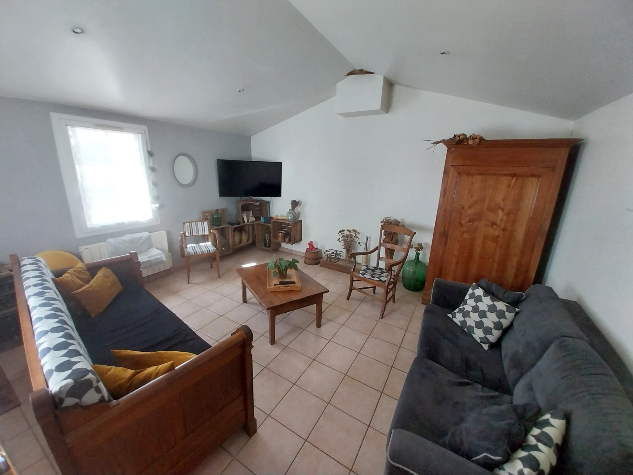 Cette maison style longère de pays située au calme de la campagne sallertainoise, comprenant : hall d’entrée avec murs en pierre apparente, un espace détente faisant office de salon, un séjour spacieux avec cuisine ouverte aménagée et équipée d’environ 45 M2, cellier. Côté nuit une salle de bain avec douche , 2 chambres disposant de placards, une suite parentale avec dressing et salle d’eau privative, wc, soit environ 134 M2 habitable. Attenant un double garage avec salle d’eau et wc d’environ 70 M2 disposant de portails électrique. Indépendant un atelier de 36.50 m2. Le tout sur un terrain d’environ 3340 M2 très agréable avec de magnifique arbres et une tyrolienne.