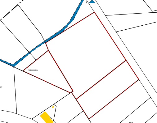 D’une superficie de 8200m2 au total, ce terrain en partie boisé et clôturé est situé dans le bourg à proximité immédiate du moulin.