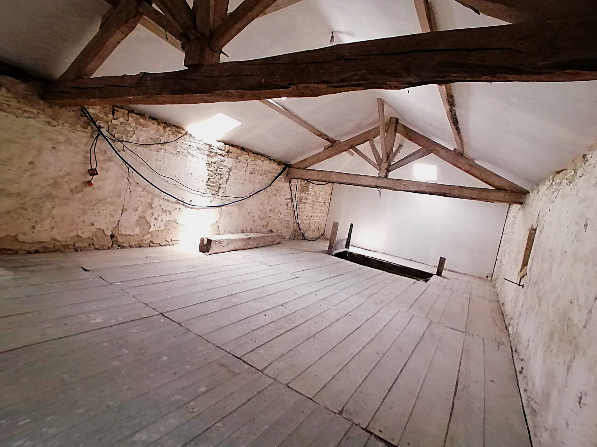 Au 1er : une grande pièce avec poutres apparentes pouvant être aménagée en chambres.