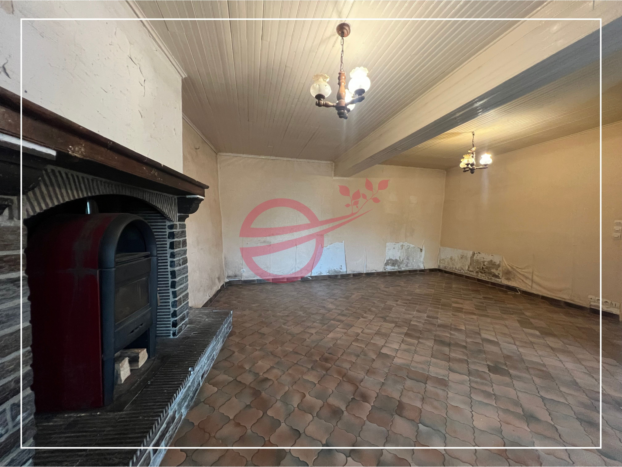 Cette maison est à rénover entièrement et comprend une partie cuisine, un salon/séjour, deux chambres en enfilade, une salle de bain, une arrière-cuisine et un WC.