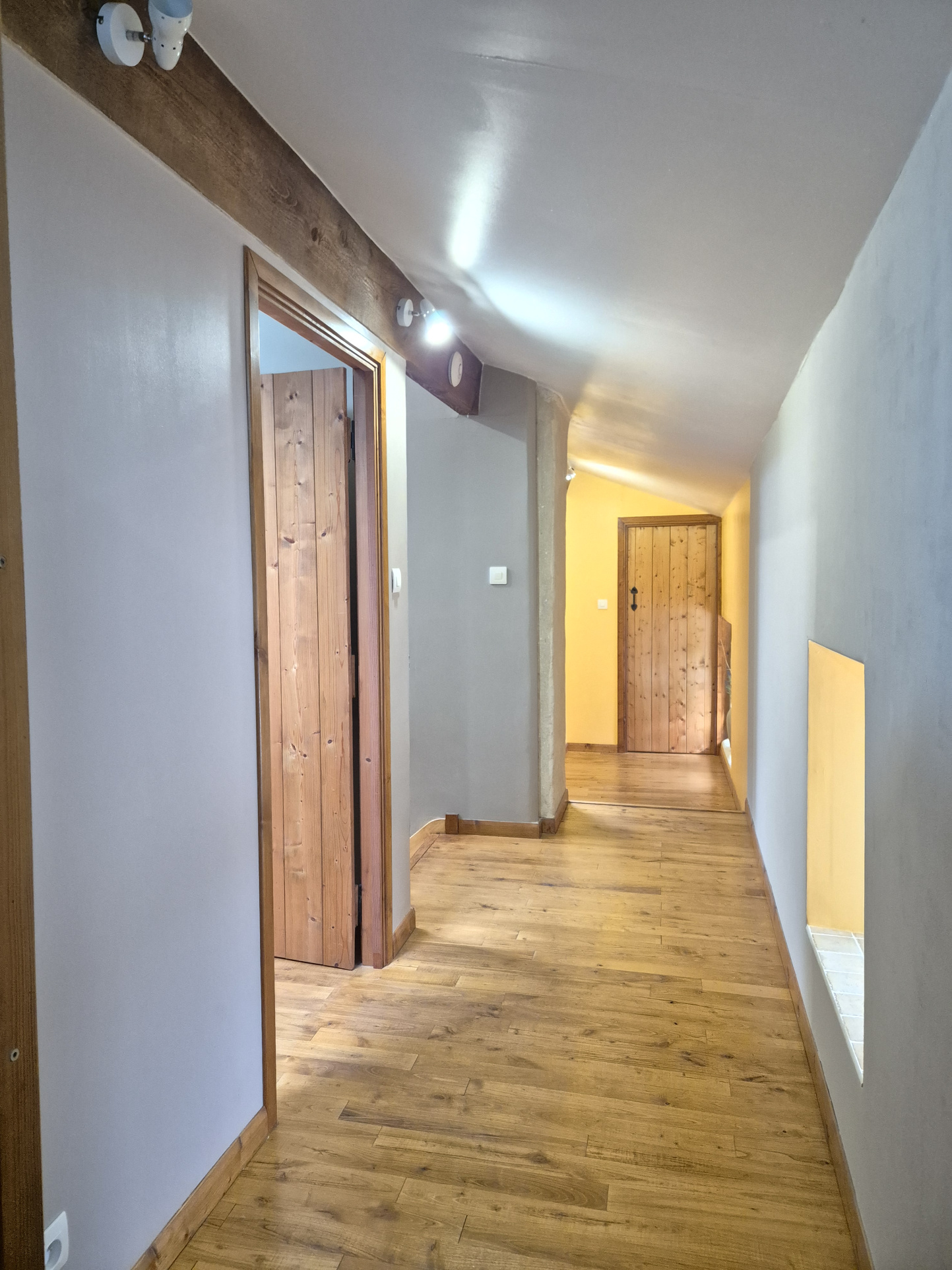 Elle offre au rez-de-chaussée une cuisine aménagée, un salon chaleureux équipé d’un poêle à bois, une chambre ainsi qu’une salle d’eau avec WC.