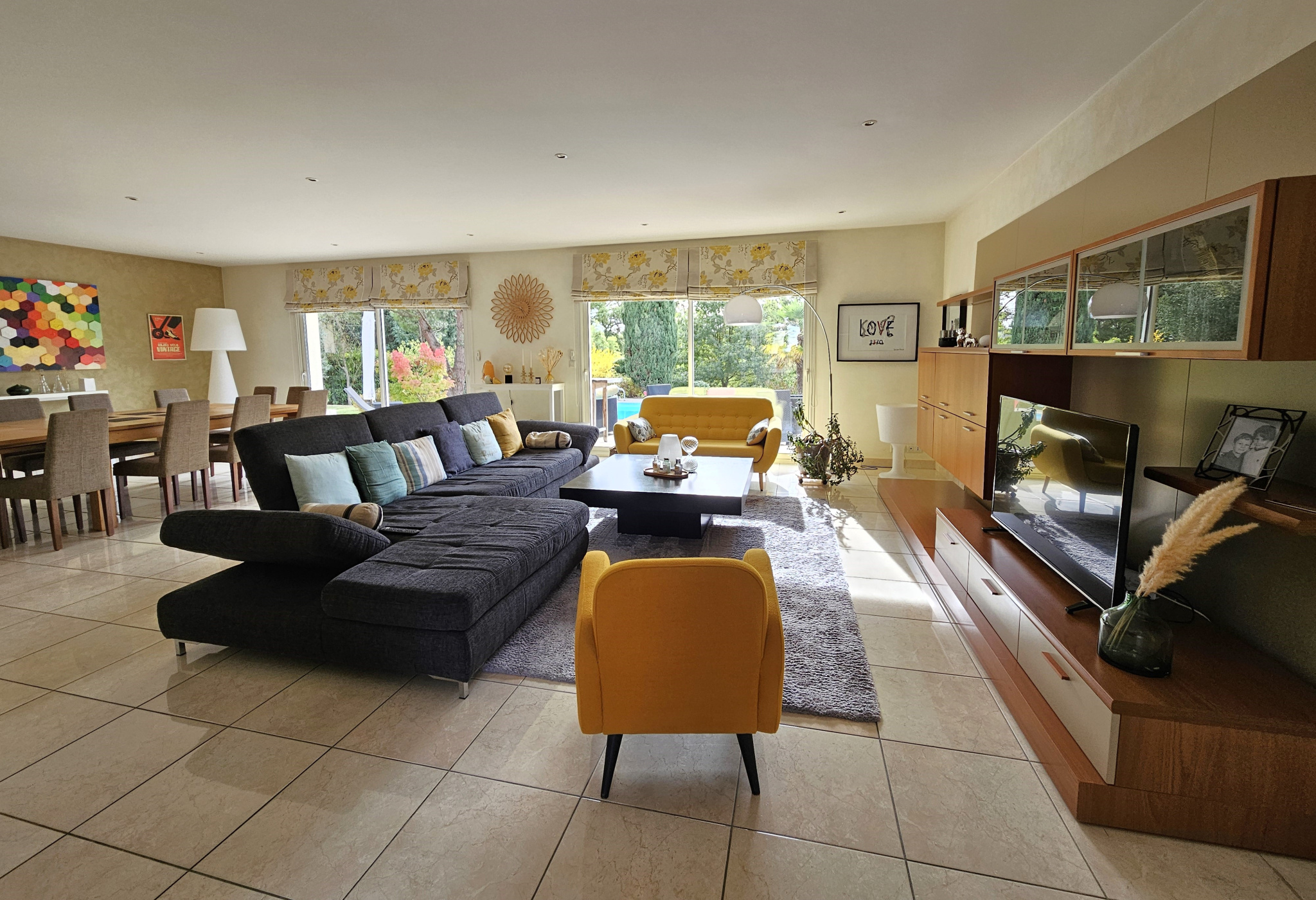 Dès l'entrée, vous allez tomber sous le charme de la vue magique dont bénéficie cette propriété. La grande pièce de vie, la récente cuisine accèdent à la terrasse qui offre plusieurs espaces autour de la piscine. Ce rez de chaussée est complété par un bureau et une suite parentale s'ouvrant également sur le jardin. L'étage est composé de quatre chambres, trois pièces d'eau et une grande salle de jeux.