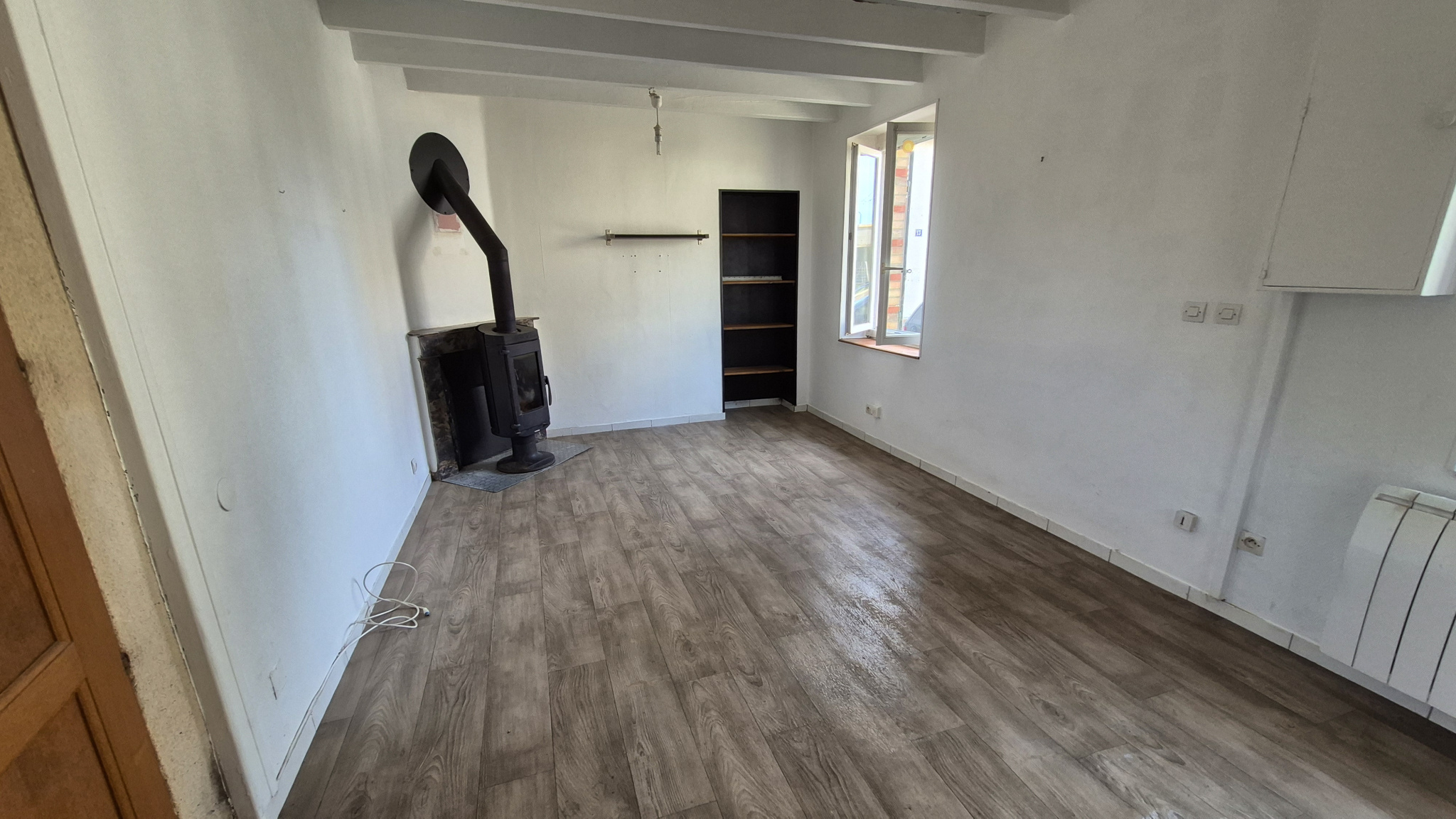 Au rez-de-chaussée, une pièce de vie lumineuse, une cuisine et une salle de bain composent le rez de chaussée.