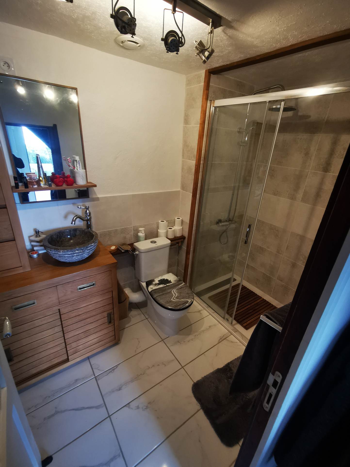 Cette partie pourrait être exploitée comme gite, car bénéficiant également d'une entrée indépendante par un escalier extérieur donnant sur un balcon.