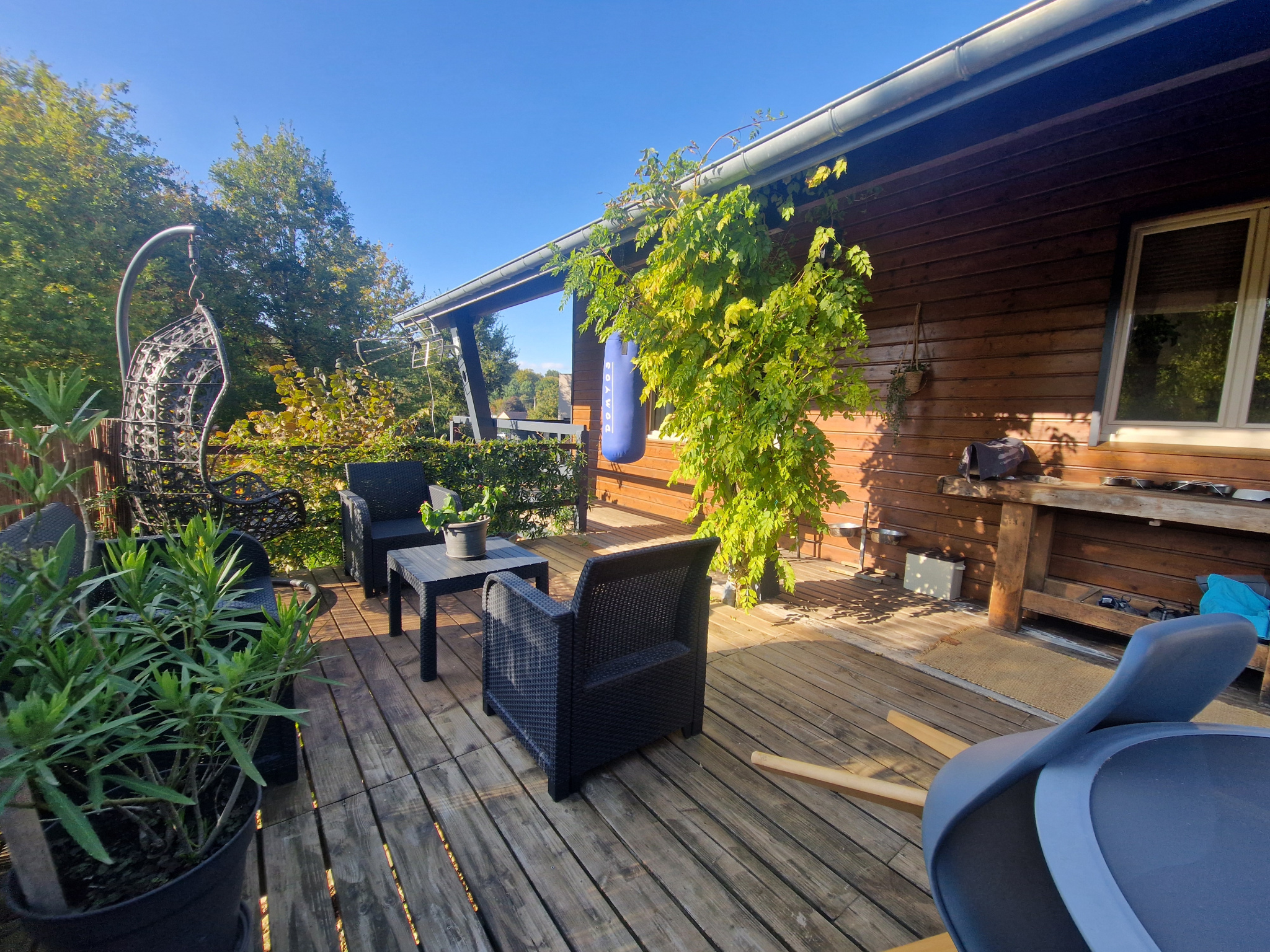 À l’extérieur, vous profiterez d’une terrasse en sortie de pièce de vie et d’un second espace en contrebas, le tout sur plus de 2500 m² de terrain et d'espace boisé.