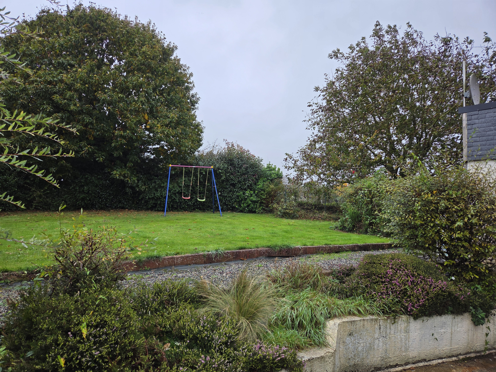 Le terrain clos d’environ 980 m², sans aucun vis-à-vis et à l’abri des regards, dispose d’une terrasse et d’une remise, offrant un véritable havre de paix pour profiter du jardin en toute intimité.