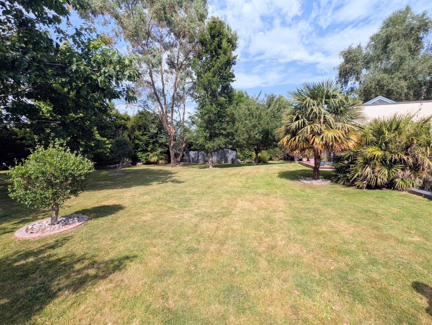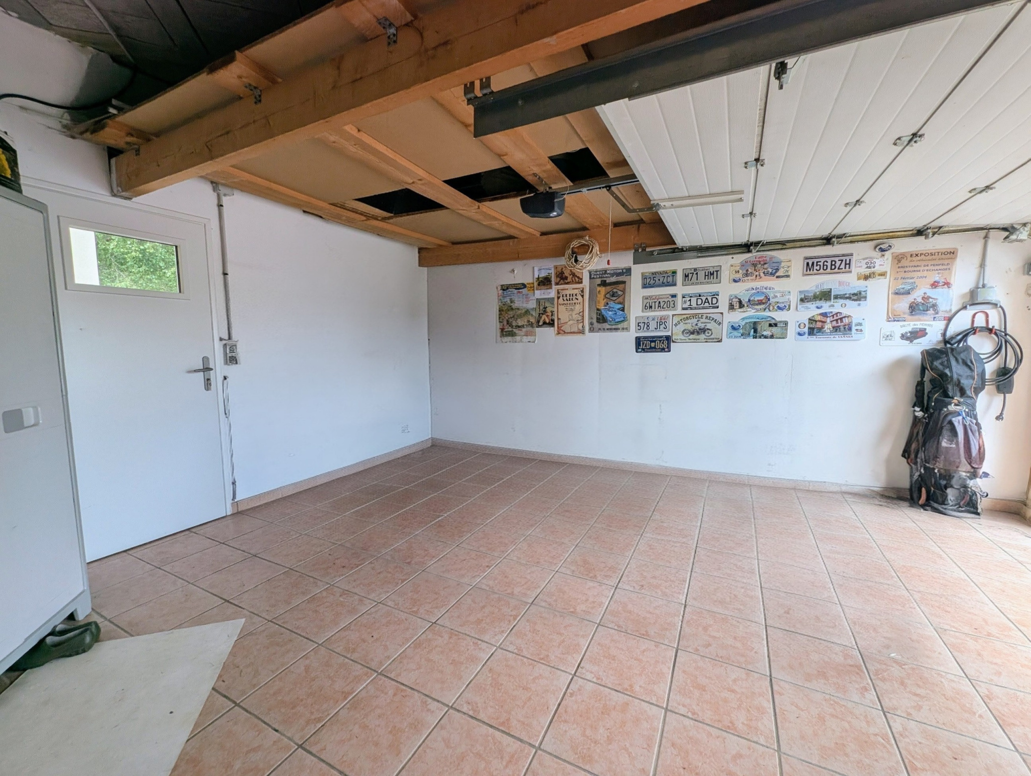 Un garage attenant carrelé avec porte motorisée, borne de recharge électrique et accès direct au jardin vient parfaire l’ensemble. Le terrain est entièrement clos, équipé d’un portail motorisé, d’un double abri de jardin et de récupérateurs d’eau.