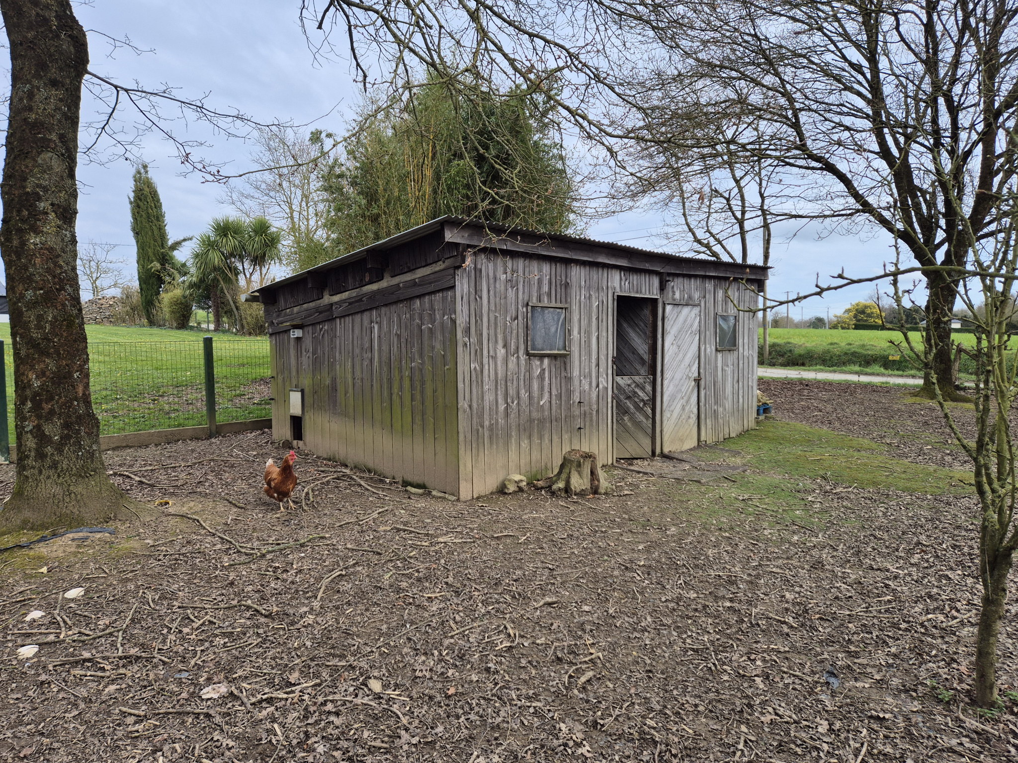 Elle comprend, une entrée, une cuisine aménagée et equipée ouverte sur le salon, un salon salle à manger avec poele à bois exposé sud et donnant sur le jardin,