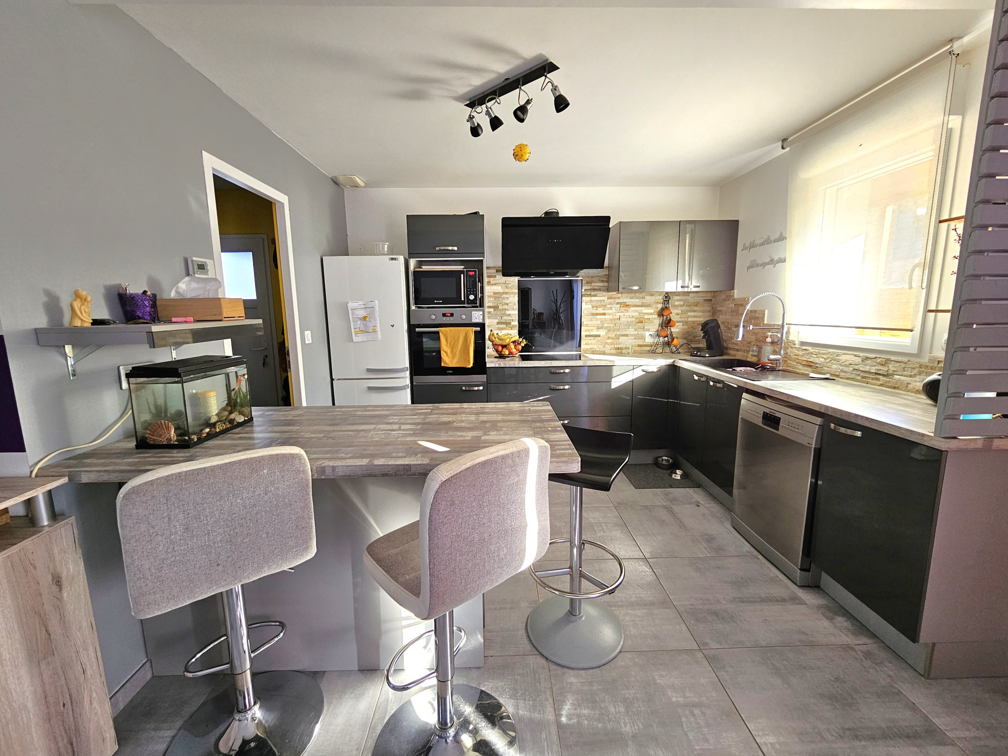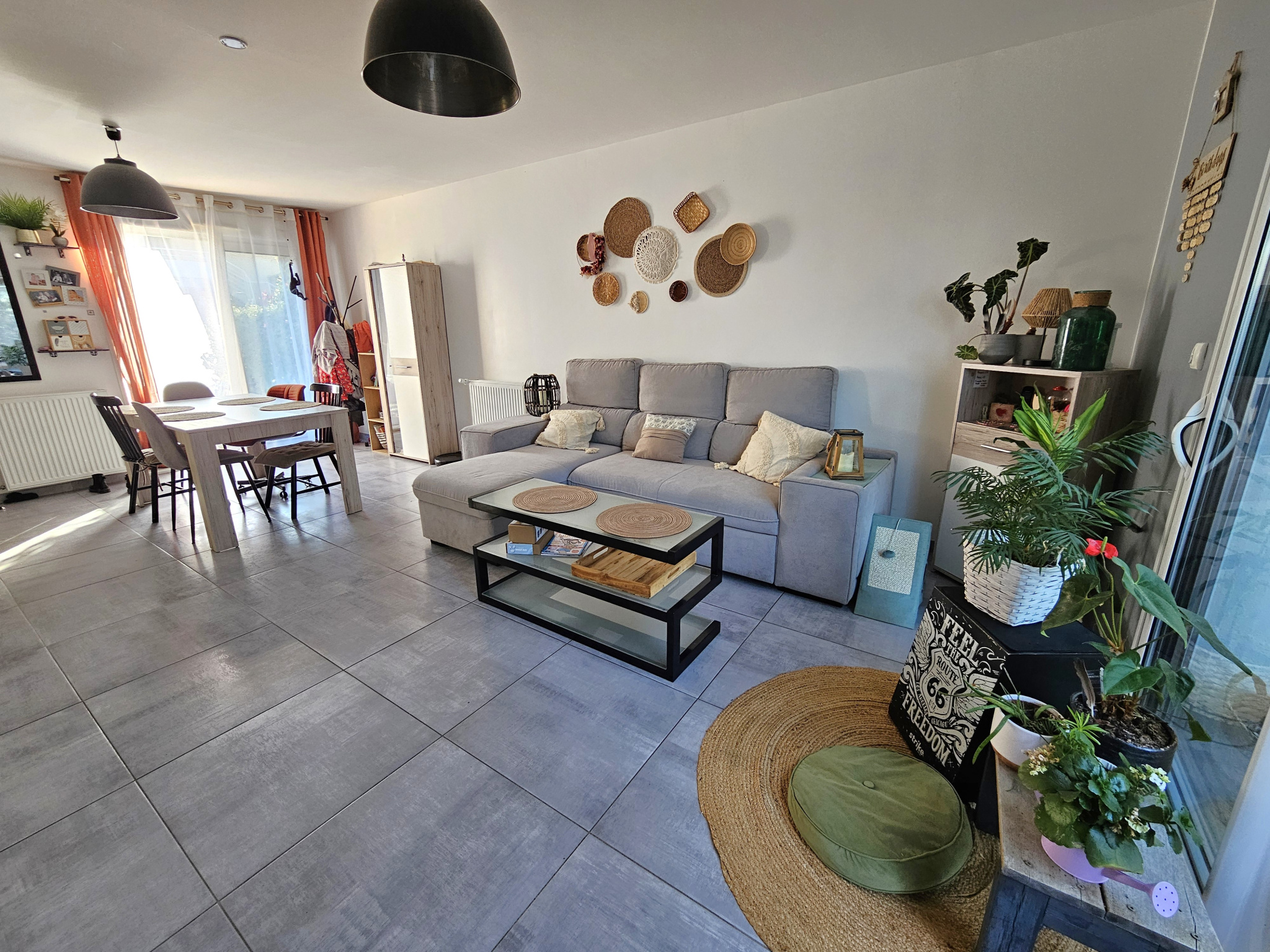 De découvrir, ce bien idéalement orientée sud, cette maison séduit dès l’entrée par sa pièce de vie baignée de lumière, où se mêlent harmonieusement salon, salle à manger et cuisine aménagée et équipée, ouverte pour des moments de partage et de convivialité.