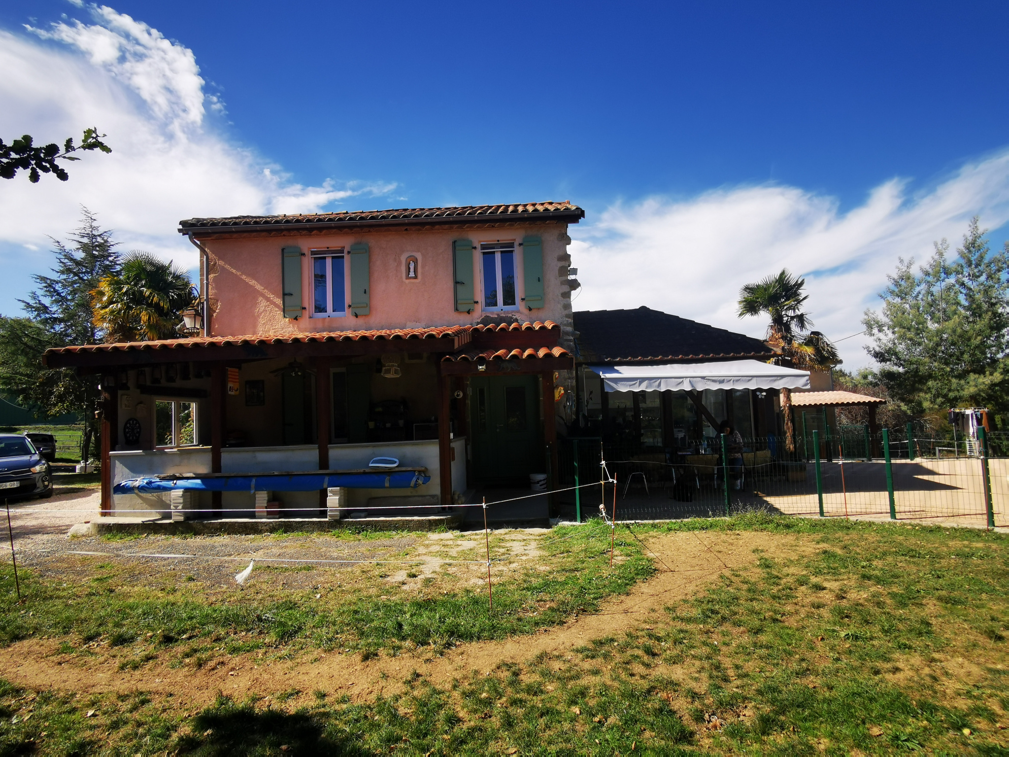 La maison principale comprend un séjour (34m2) avec poêle à bois, une cuisine ouverte (14m2). La cuisine s'ouvre sur la terrasse et la piscine. Il y a une chambre en rez de chaussée (13m2) avec dressing et salle d'eau avec WC privative, ainsi qu'une autre salle d'eau plus grande. WC, buanderie avec local technique et chauffage (pompe à chaleur)