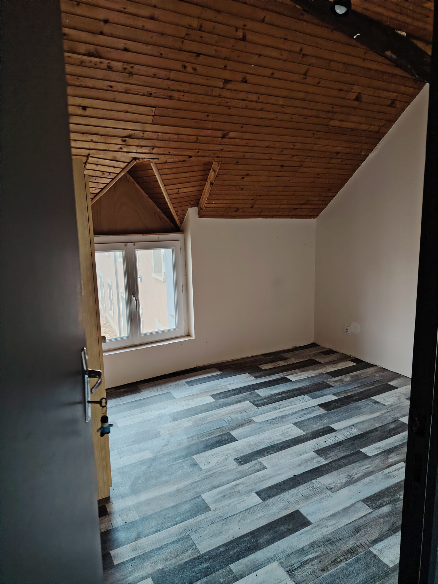 Trois espaces distincts comprenant quatre chambres mansardées, chacune avec point d’eau / lavabo, et toilettes.