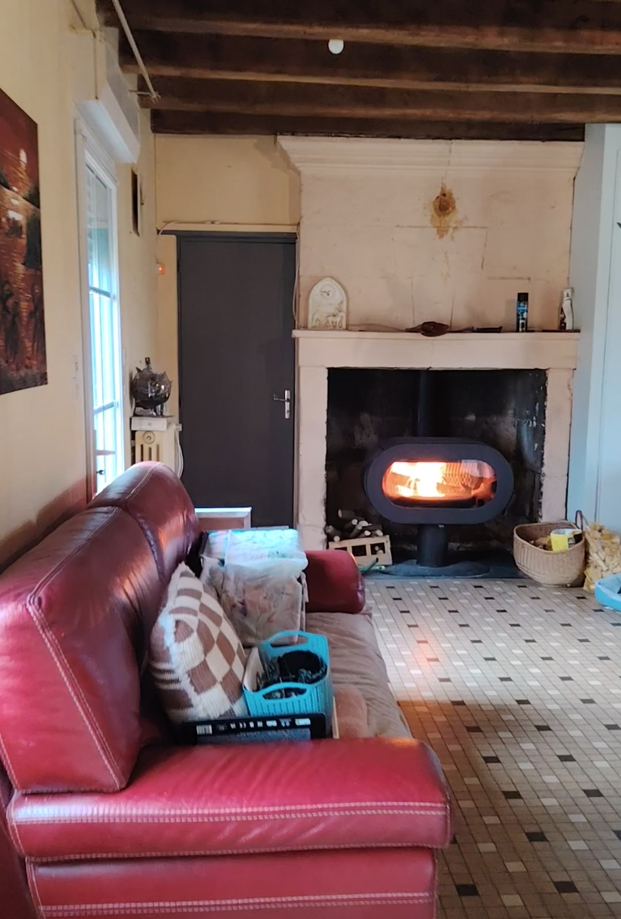 Pièce de vie avec cheminée (17 m²).