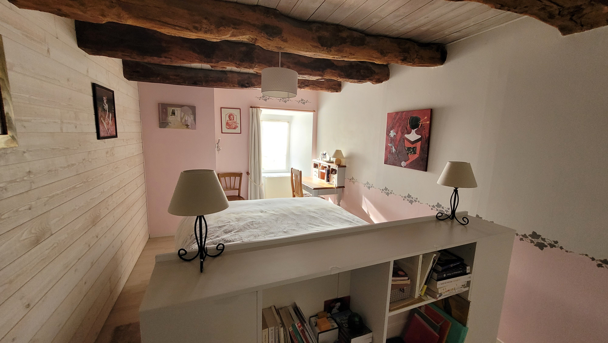 - Une seconde partie comprenant un couloir, deux chambres, une buanderie, un bureau en mezzanine pour un espace de travail inspirant et un grenier sous la mezzanine.