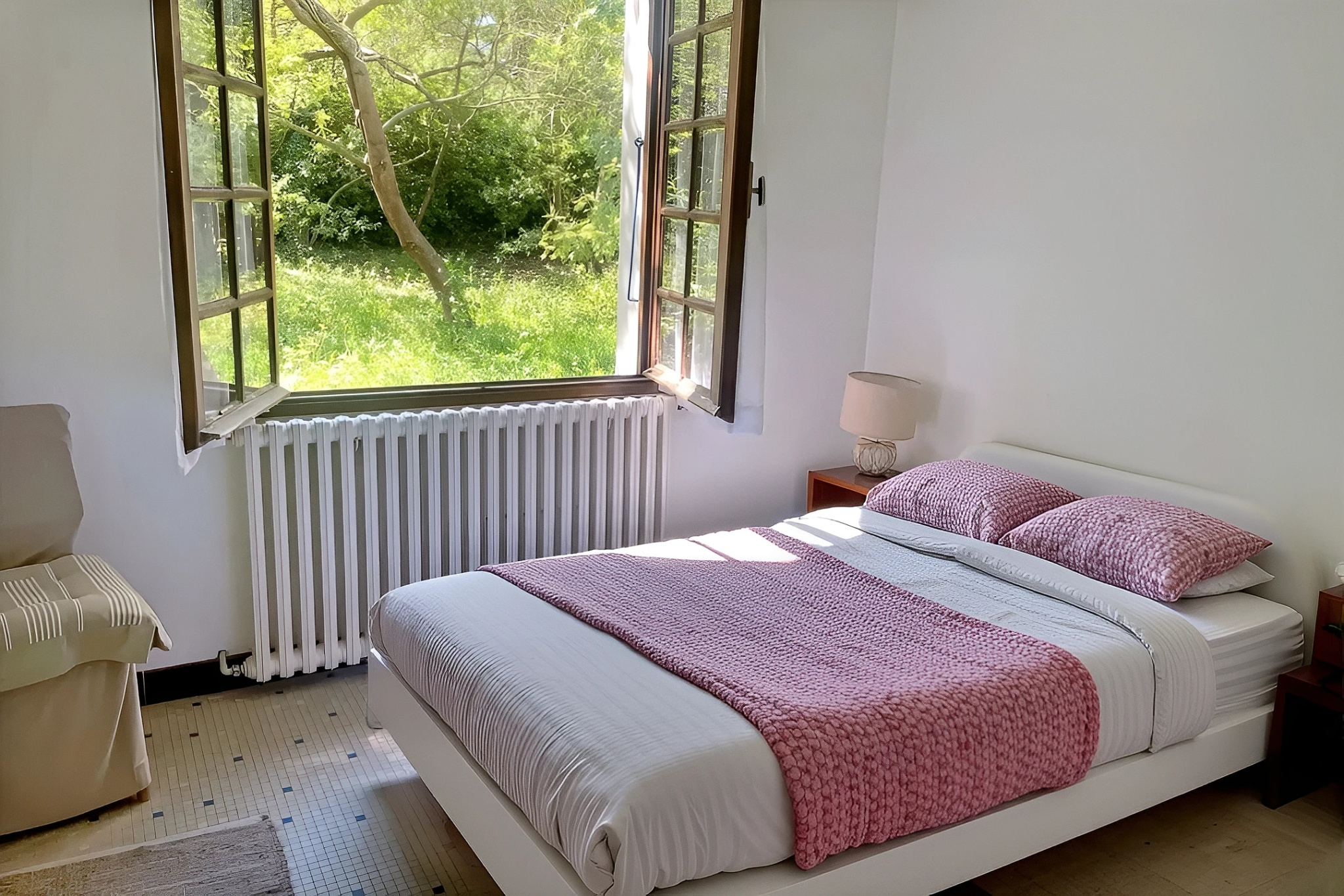 - Extérieur : terrain arboré de 1500 m² sans vis-à-vis, terrasse carrelée de 30 m².