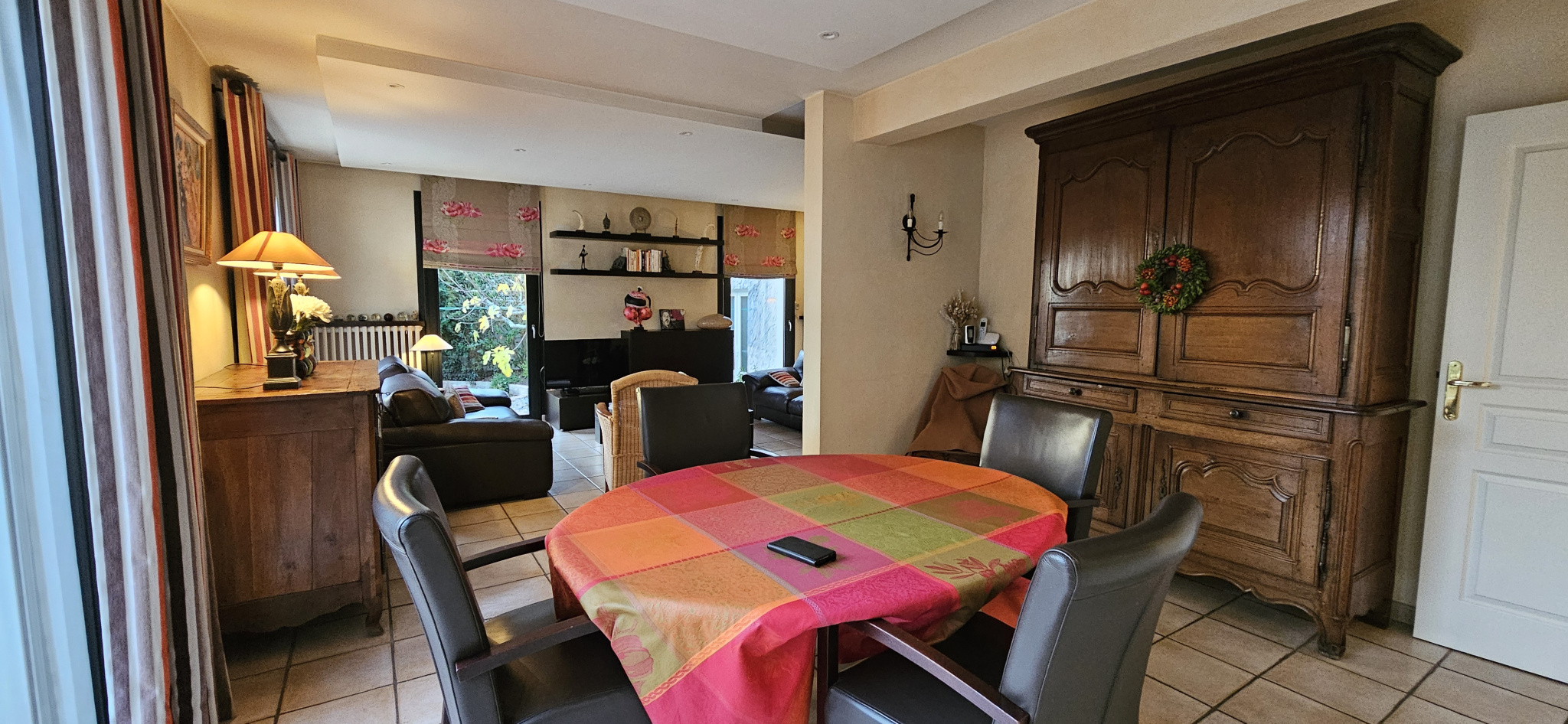 Cette maison de PLAIN-PIED particulièrement bien entretenue conviendra à quiconque souhaite la proximité du Centre ville, le calme d'une rue de riverains, l'orientation Sud sans vis à vis et une distribution pratique de l'ensemble des pièces.