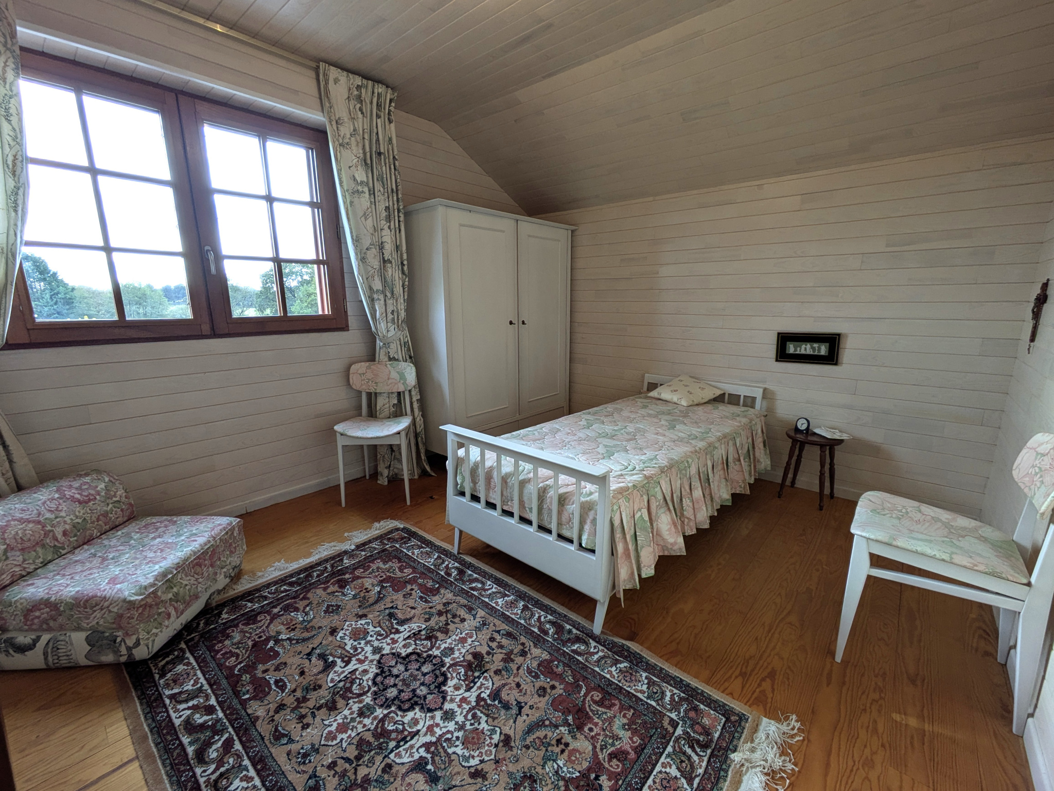 Dans la partie nuit, une grande chambre et une salle de bain.