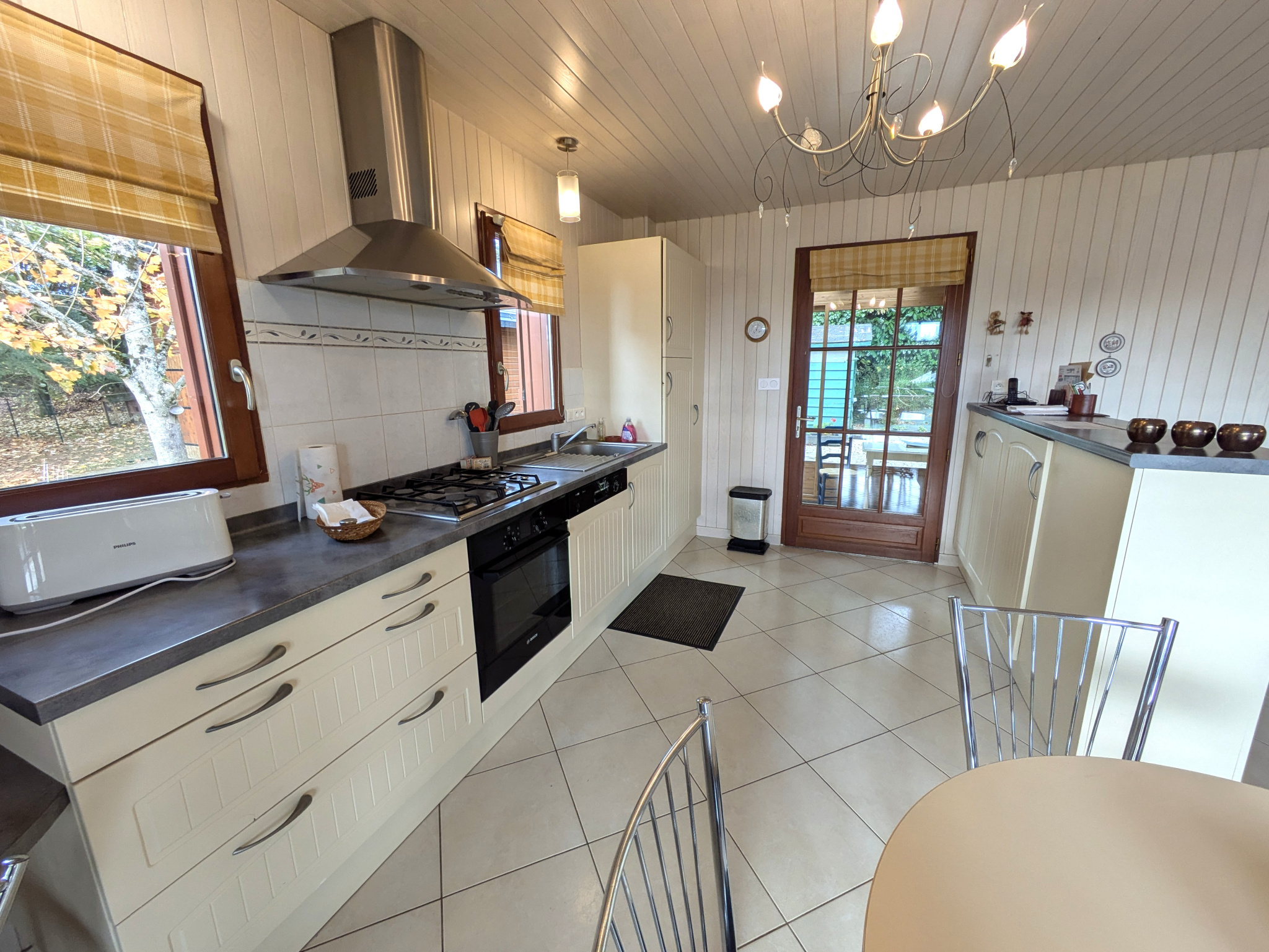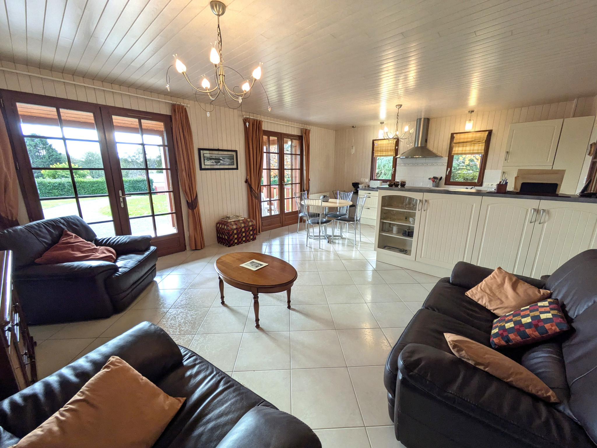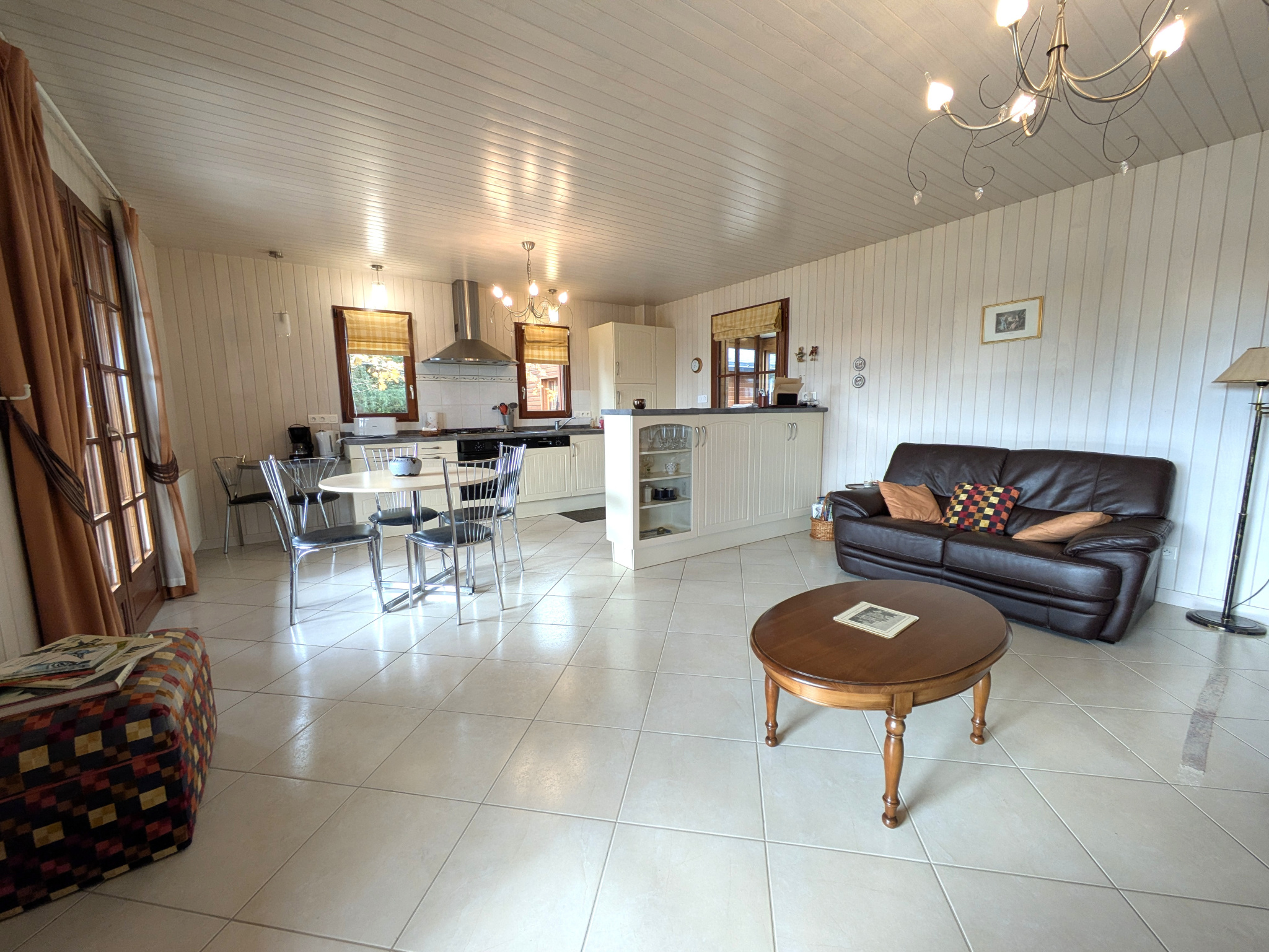 Une pièce de vie chaleureuse, avec une cuisine équipée et aménagée, donnant sur une très belle terrasse, sans vis-à-vis.