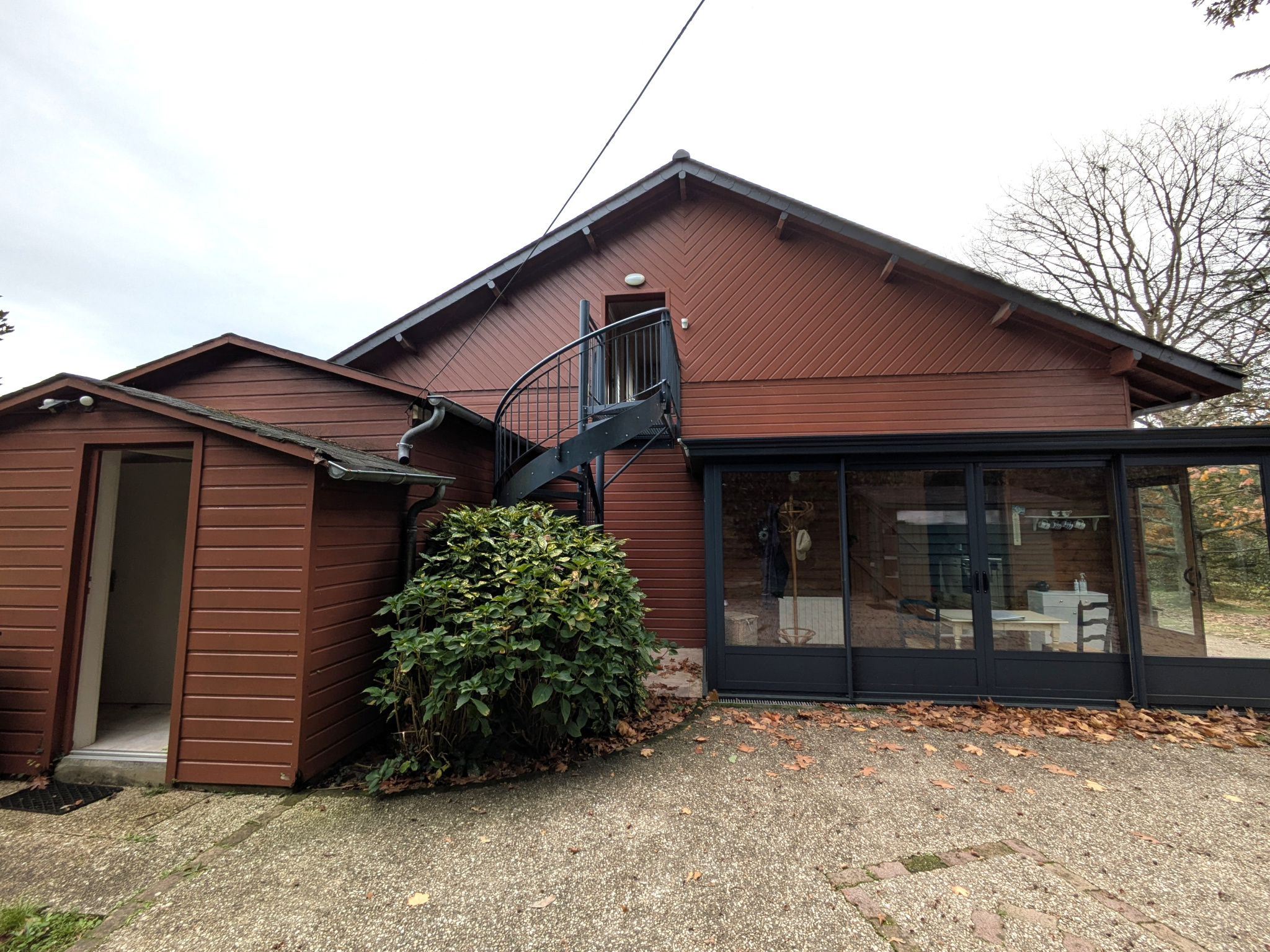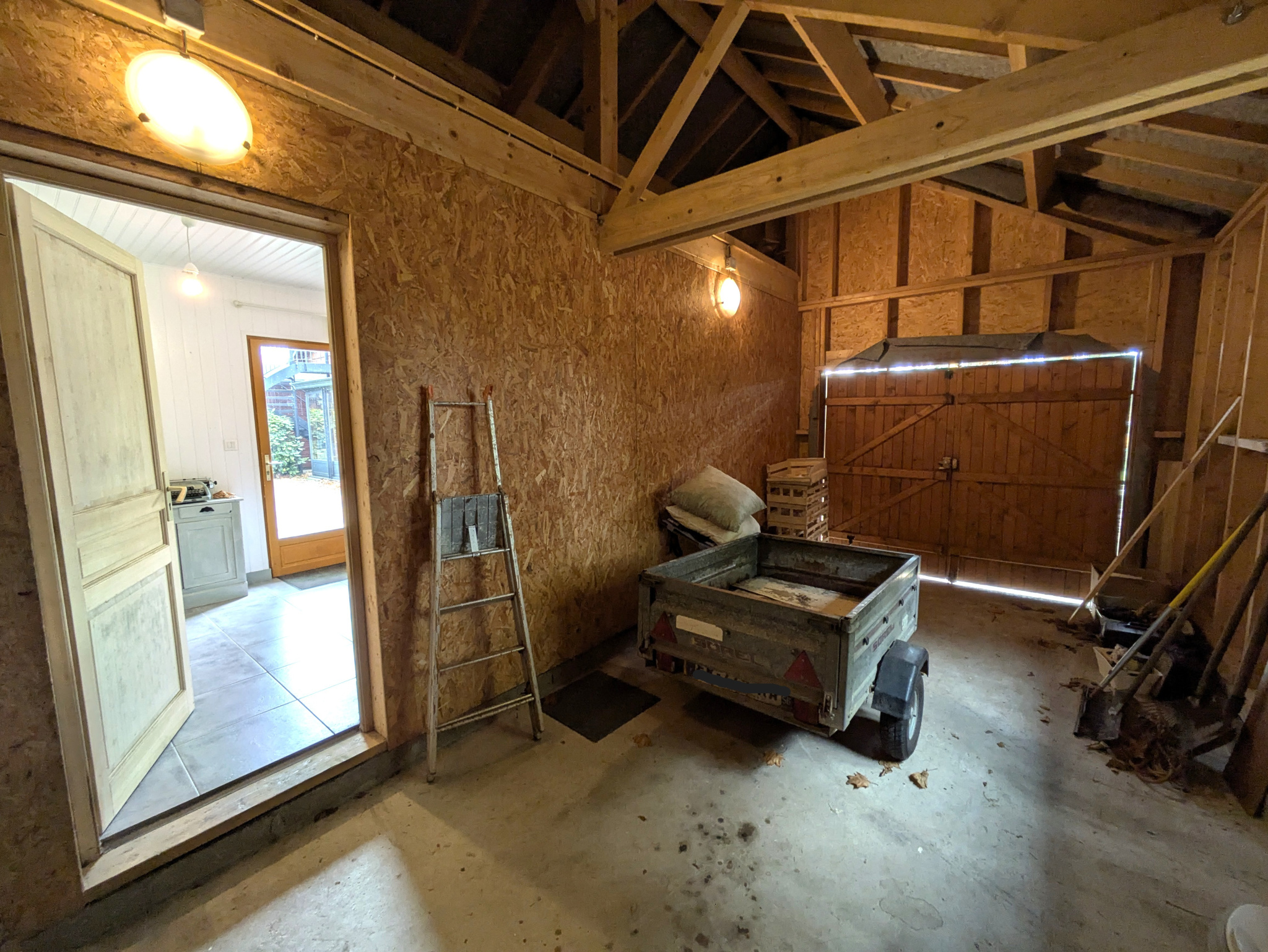 Un abri de jardin et une annexe avec évier et évacuation pour la machine à laver.