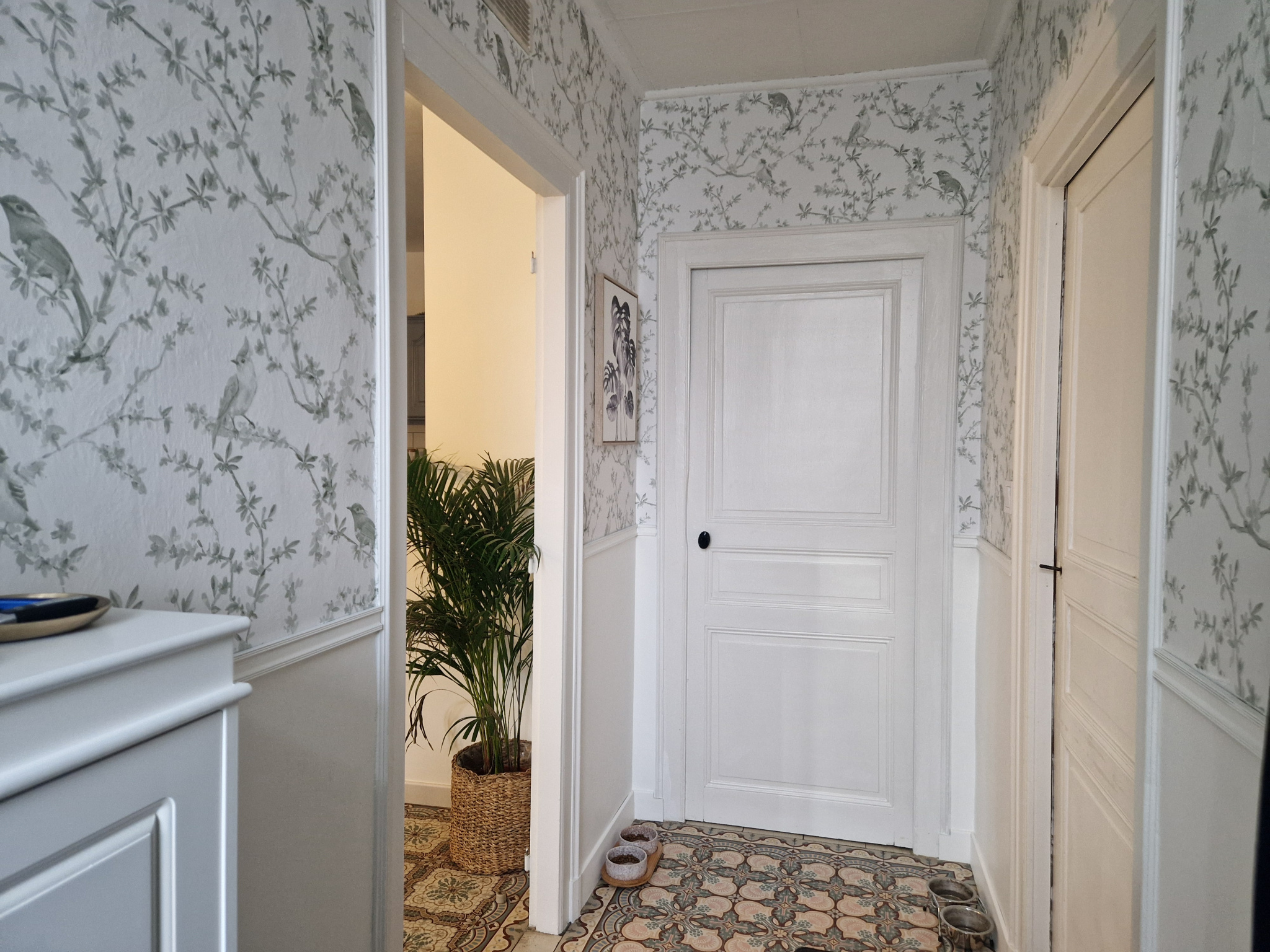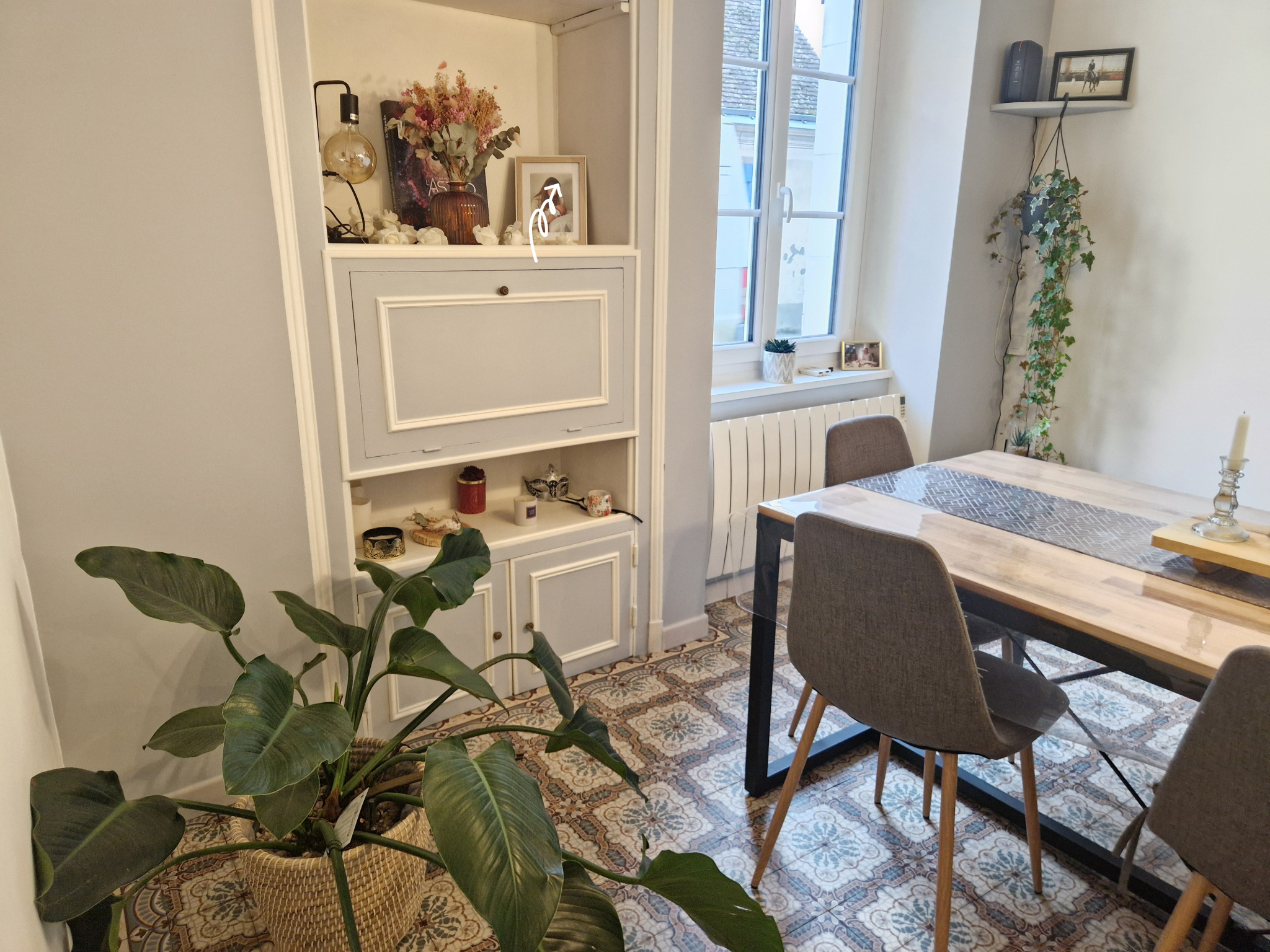 Dès l’entrée, tu seras accueilli(e) par un séjour chaleureux ouvert sur une cuisine aménagée et semi équipée. Les carreaux de ciment d’origine donnent le ton : les amoureux de l’ancien vont craquer.