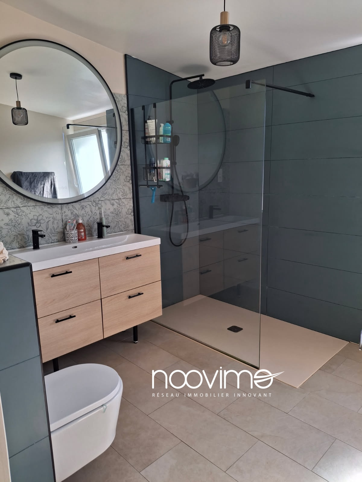 Une grande salle d'eau refaite récemment avec douche à l'italienne, sèche serviette et wc.