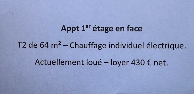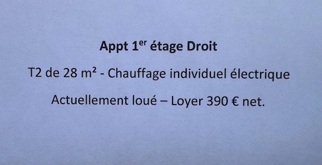 L'immeuble comprend 4 appartements T2 respectivement de 68m² et 27 m² au RDC, et de 64 m² et 28 m² au 1er étage, soit un total de 187 m² habitables.