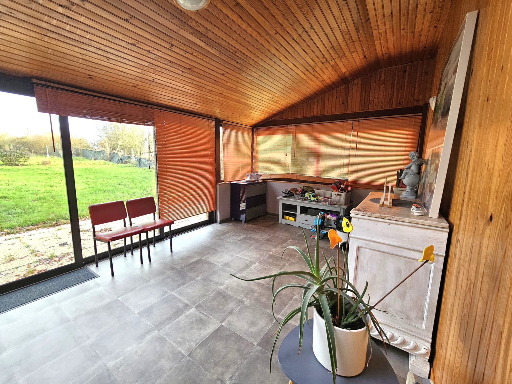 Elle se compose d’un rez-de-chaussée lumineux avec une agréable pièce de vie (avec poêle) et une cuisine aménagée et équipée, prolongée par une véranda qui ouvre directement sur le jardin.