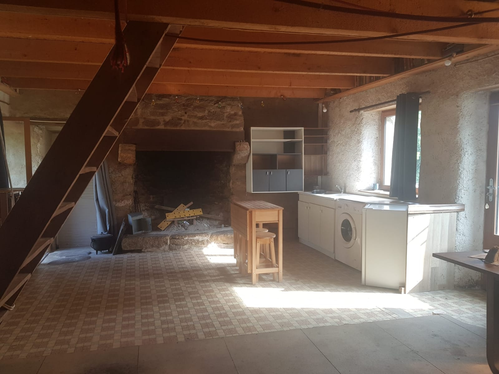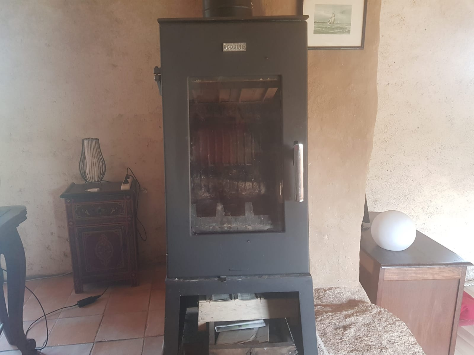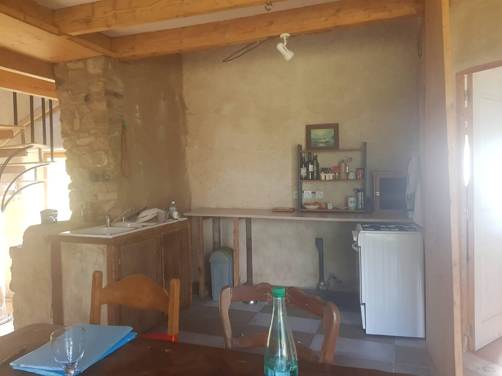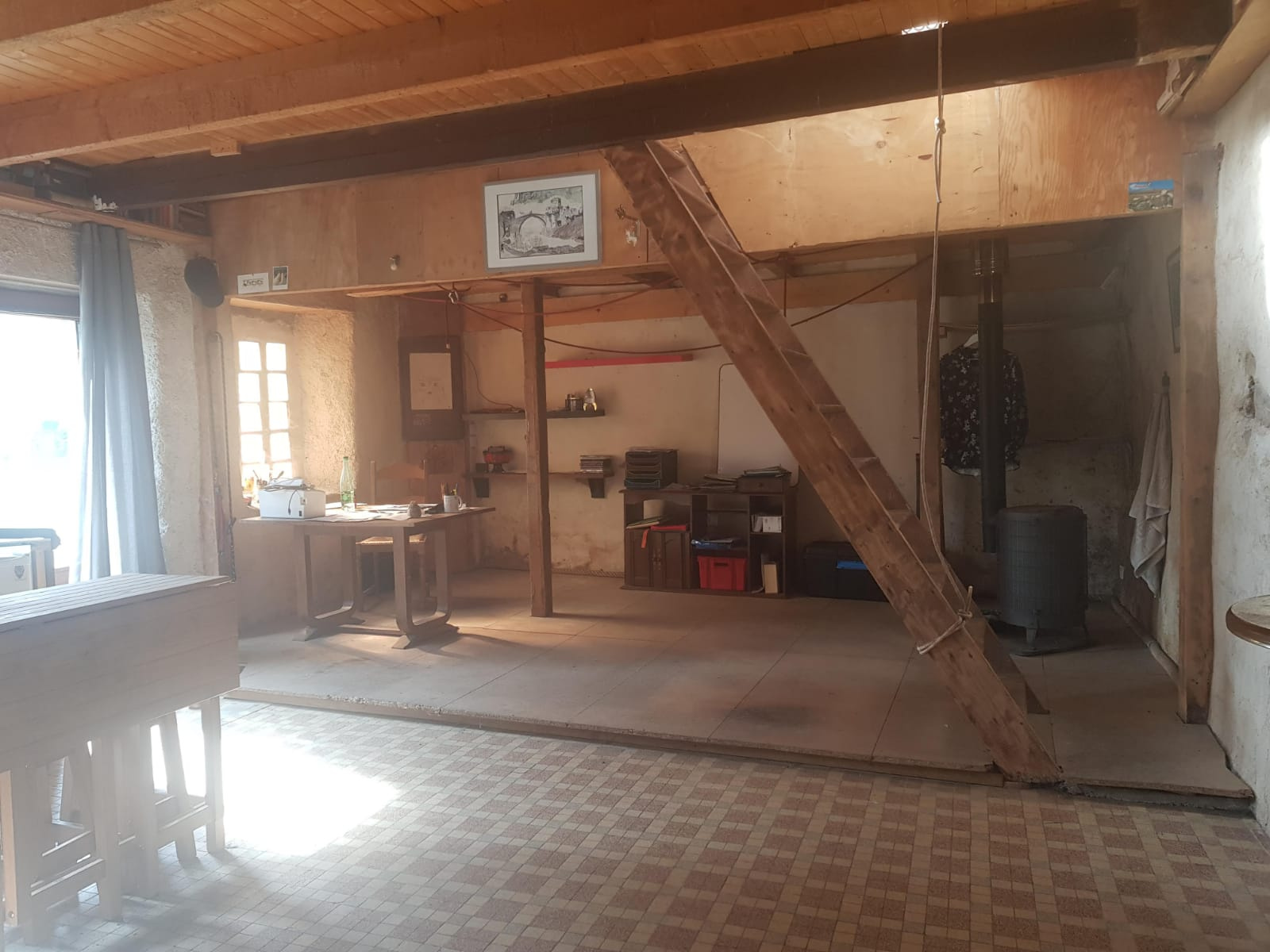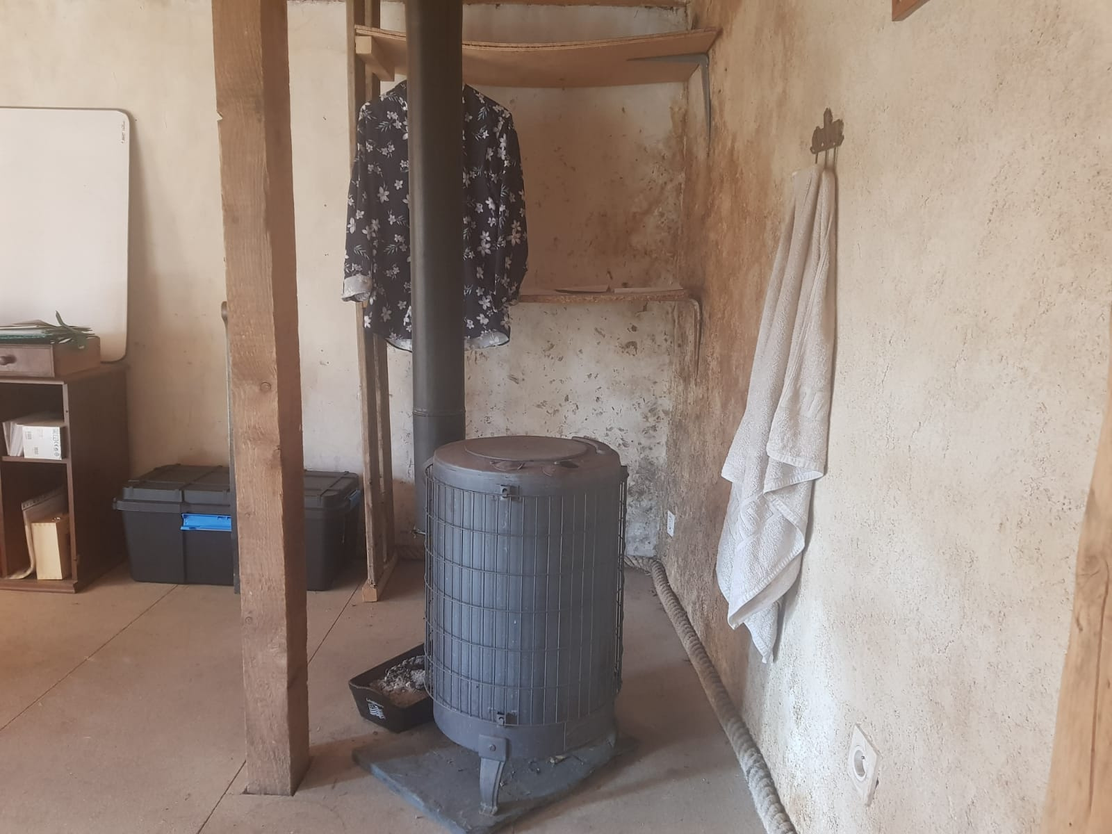 - Rez-de-chaussée : Une entrée menant à une pièce de vie avec cuisine équipée et poêle à bois, une chambre, un cellier pour le rangement, ainsi qu’une salle de bain avec douche et WC.