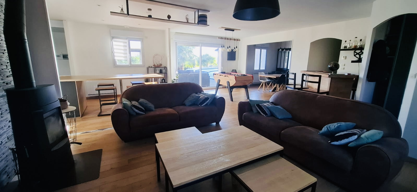 Construite en 2007 et agrandit en 2016, cette belle maison familiale séduit par ses beaux volumes, sa luminosité et son environnement privilégié avec vue dégagée sur la nature.