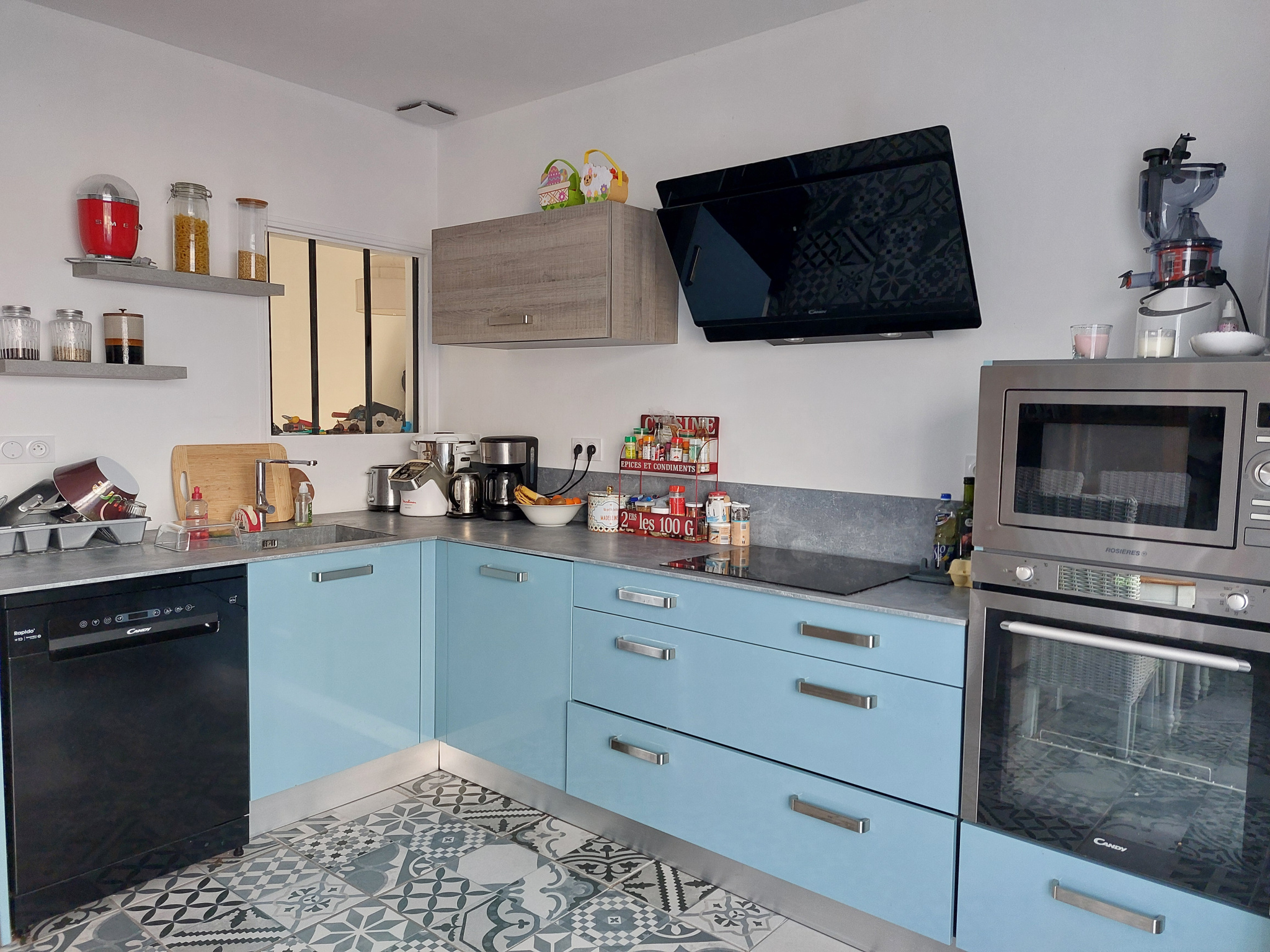 Au rdc un garage, une buandeire, une cave. Au 1er étage un très beau salon séjour et une cuisine aménagée et équipée,