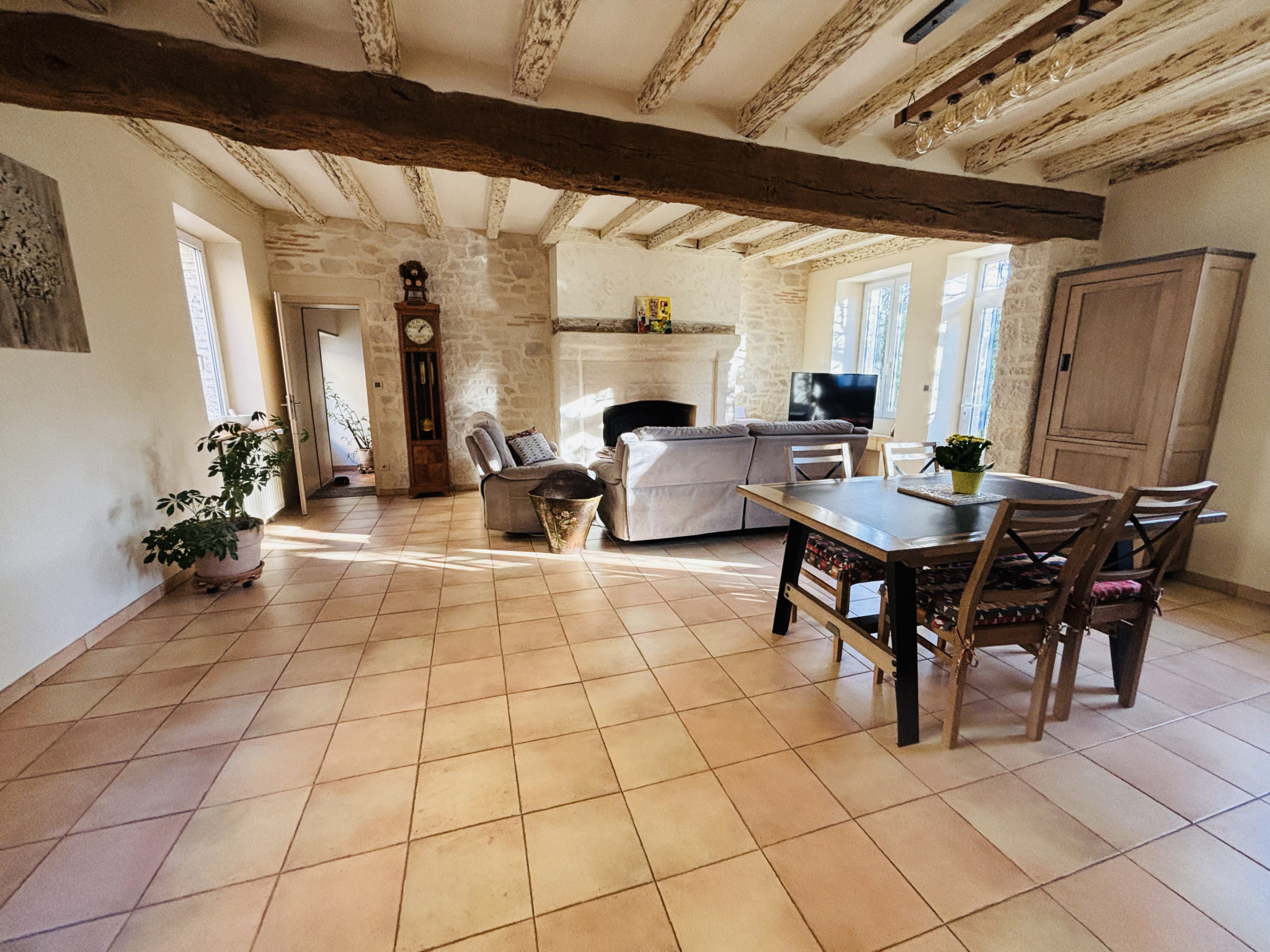 Belle pièce de vie avec cheminée