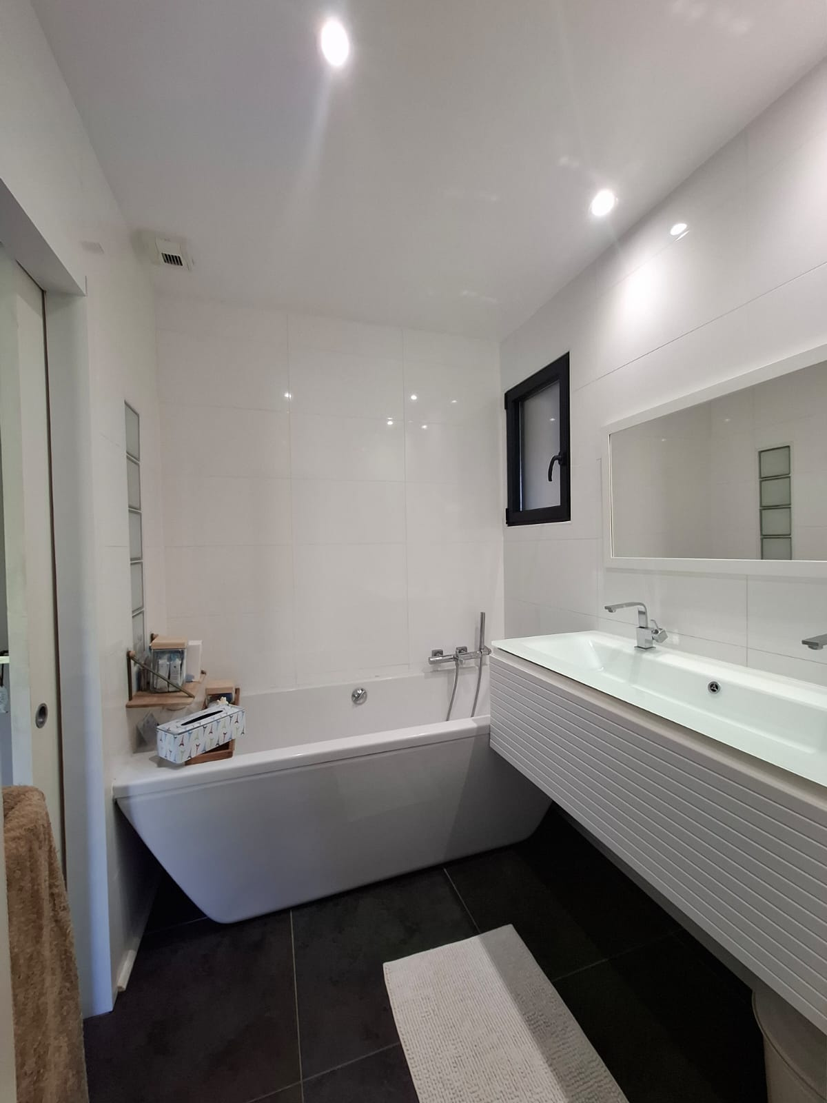 Elle se compose d’un salon lumineux, d’une cuisine aménagée, d’un cellier, de 2 chambres, d’une salle d’eau, ainsi que d’une suite parentale avec salle de bain.