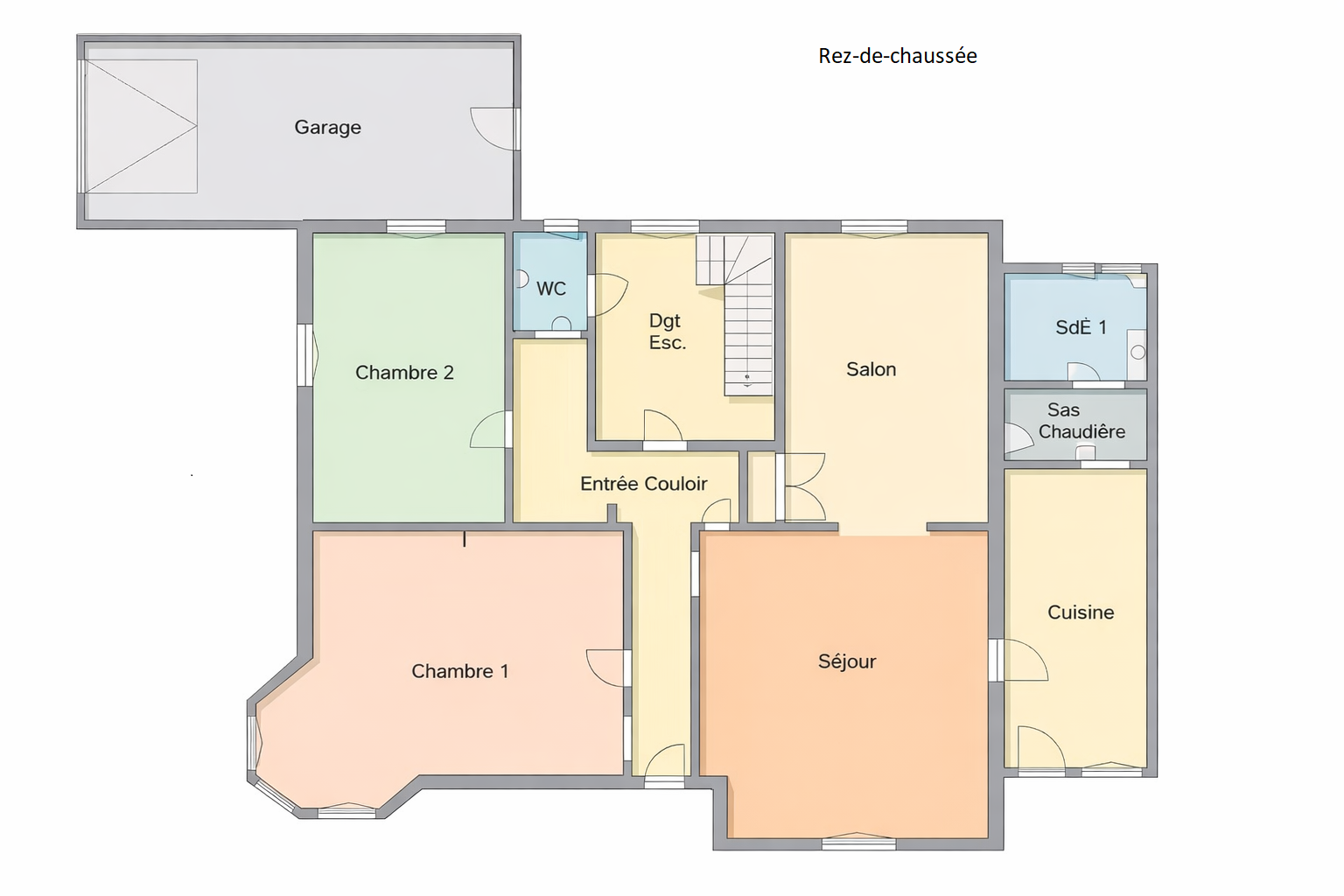 La maison propose au rez-de-chaussée, une entrée qui dessert deux chambres, une cuisine, une salle d'eau ainsi qu’un bel espace de réception comprenant un salon et un séjour.