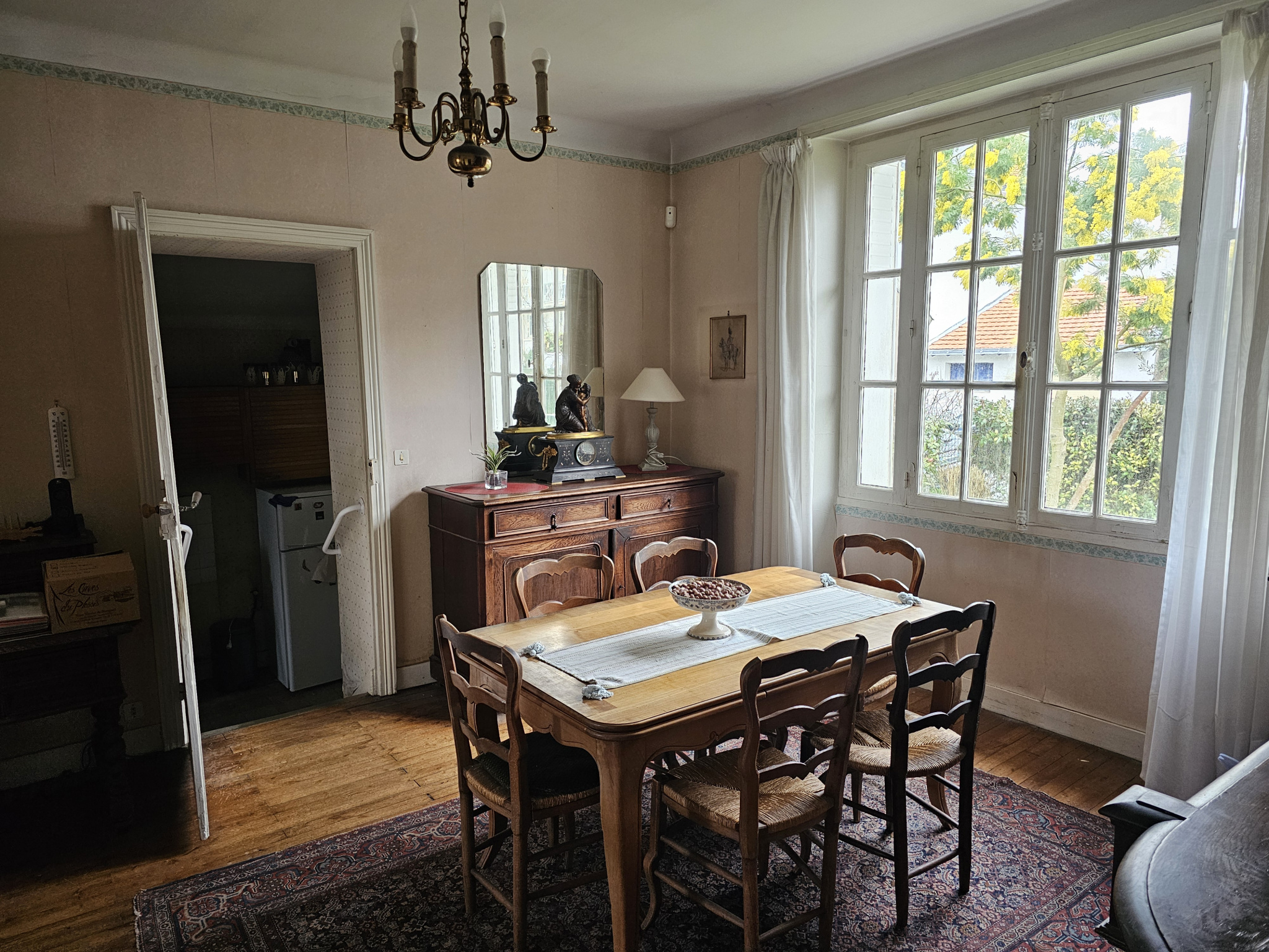 Dès l’entrée, le charme opère : belle hauteur sous plafond, parquet ancien, volumes généreux… Autant d’éléments qui confèrent à cette demeure une atmosphère chaleureuse et authentique, idéale pour un projet de rénovation haut de gamme.
