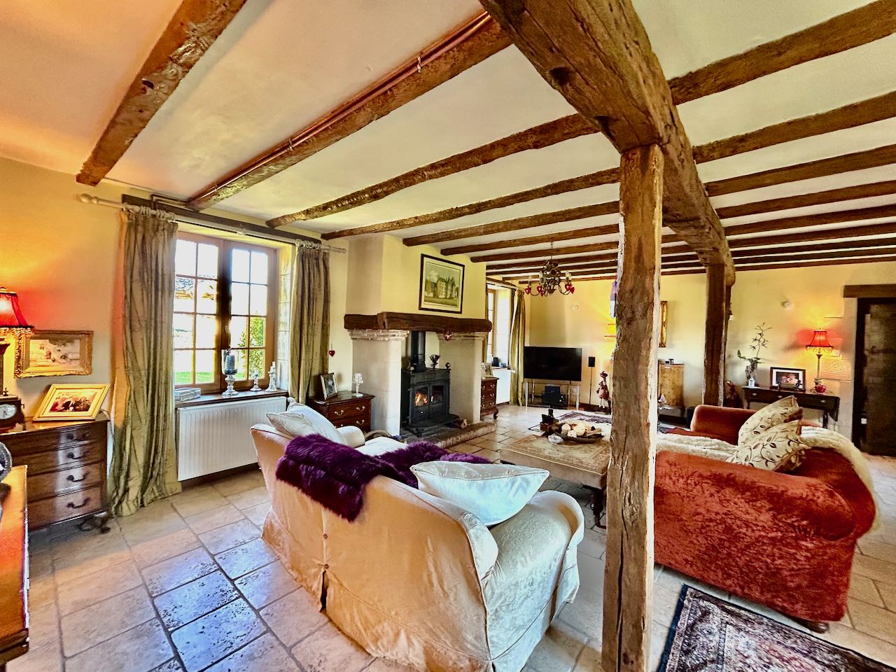 La maison principale, pleine de charme avec ses poutres apparentes et ses murs en pierre, dispose de vastes pièces de réception, de quatre chambres avec salle d’eau privative et de sa propre piscine chauffée, idéale pour une vie de famille confortable et l'accueil de la famille ou des amis.